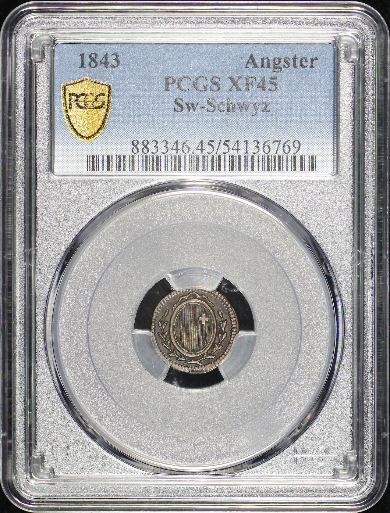 1843 Switzerland Canton of Schwyz Copper 1 Angster KM-55 PCGS XF-45.