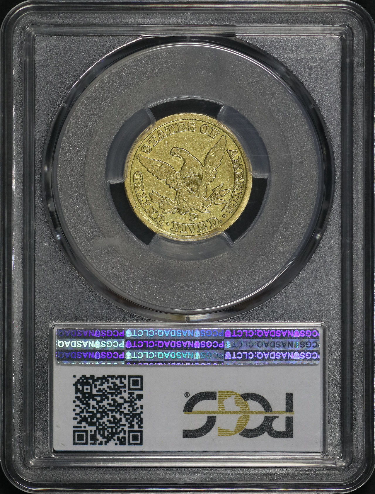 1845-D Liberty Head $5 PCGS VF-30 designed by Christian Gobrecht.