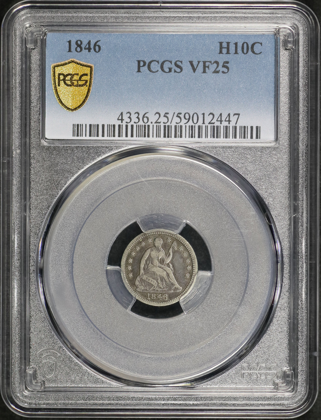1846 Liberty Seated Half Dime PCGS VF-25 designed by Robert Ball Hughes and Christian Gobrecht.