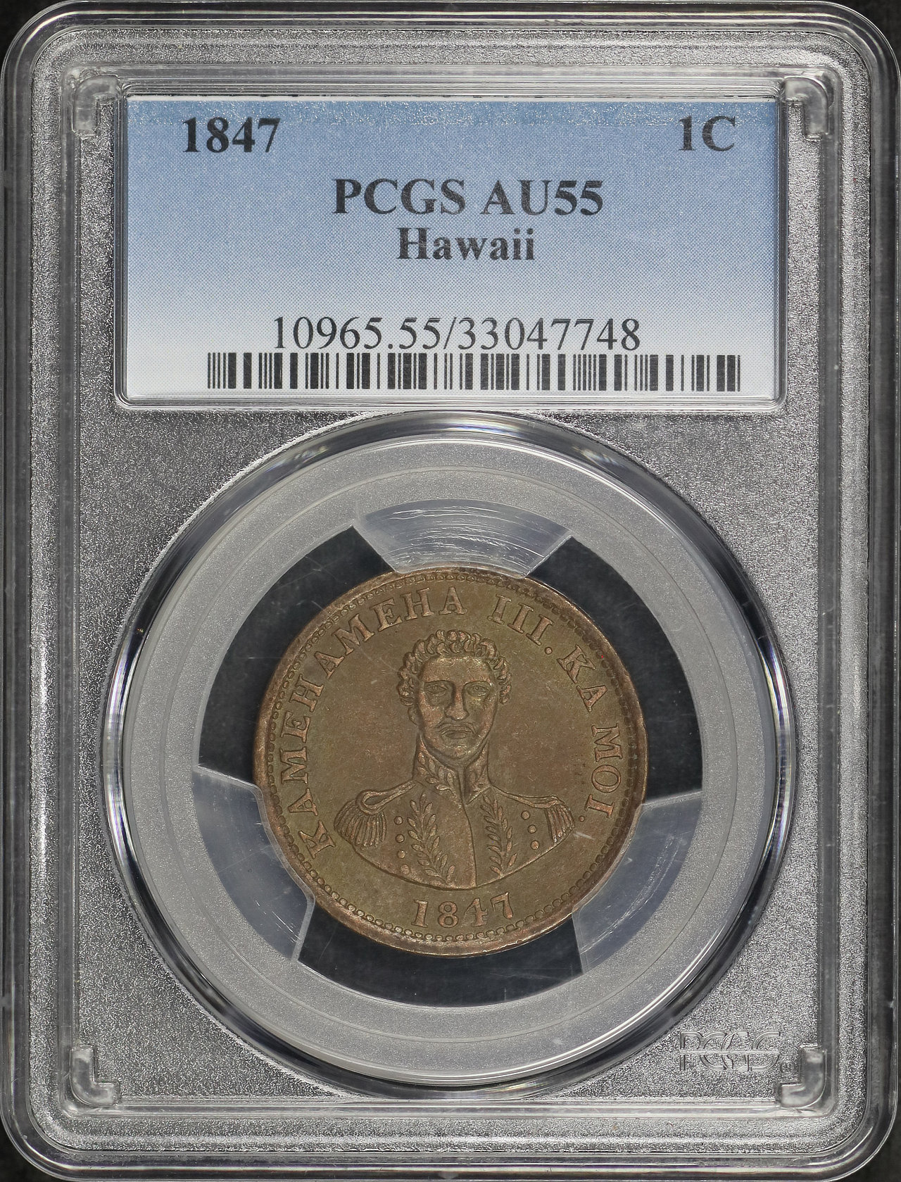 1847 Hawaii Cent PCGS AU-55 BN.