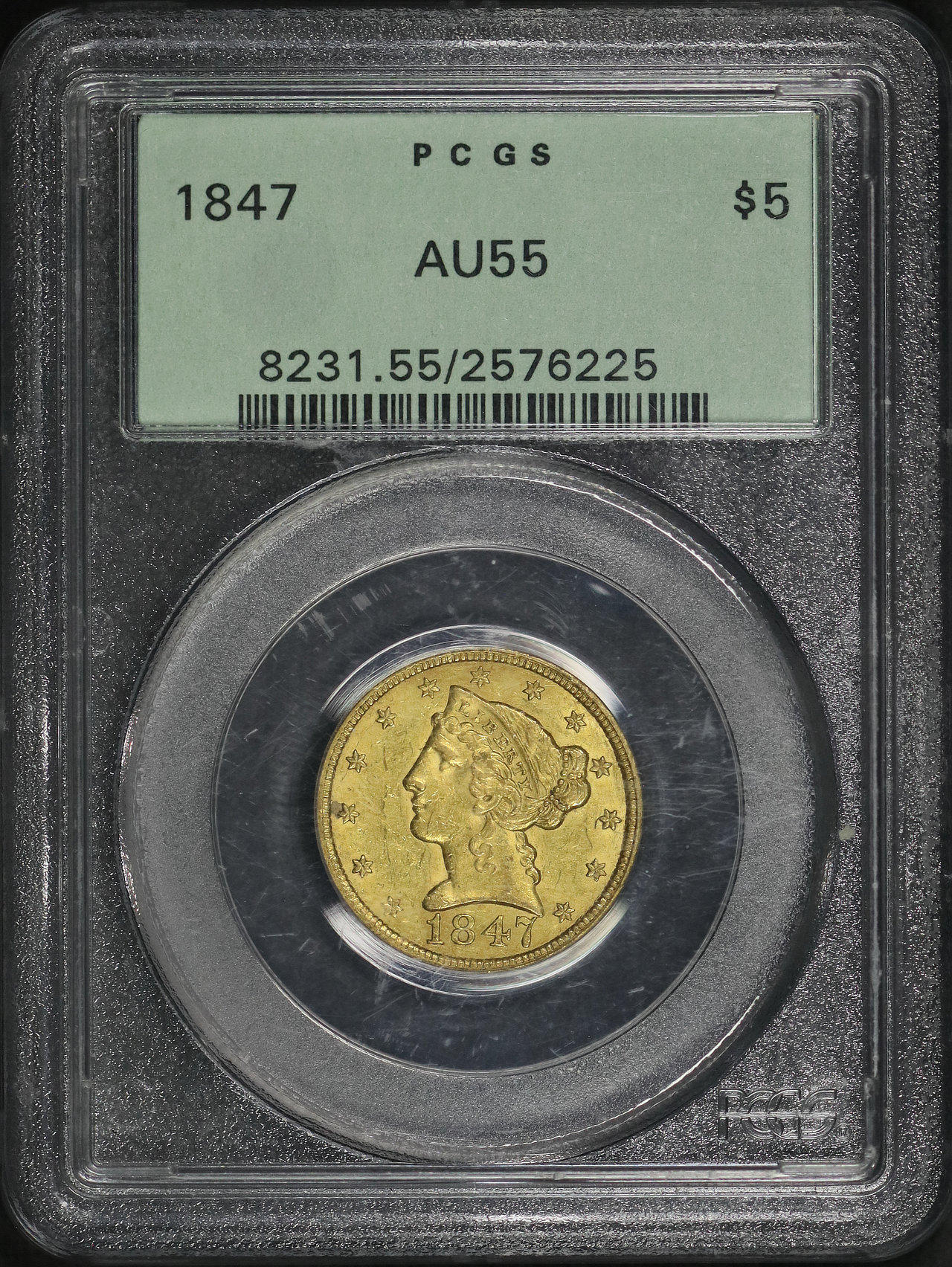 1847 Liberty Head $5 PCGS AU-55 Old Green Holder
