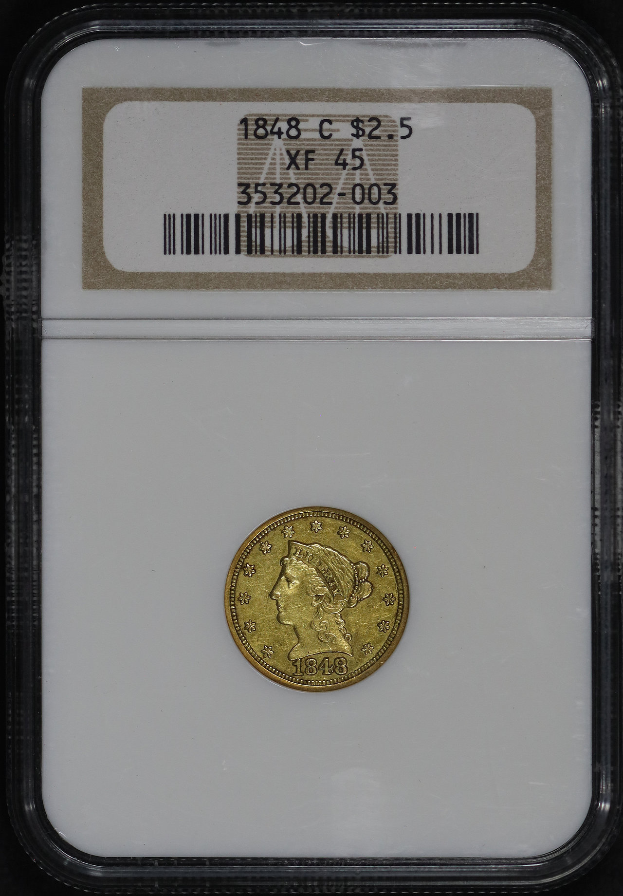 1848-C Liberty Head $2.5 NGC XF-45.