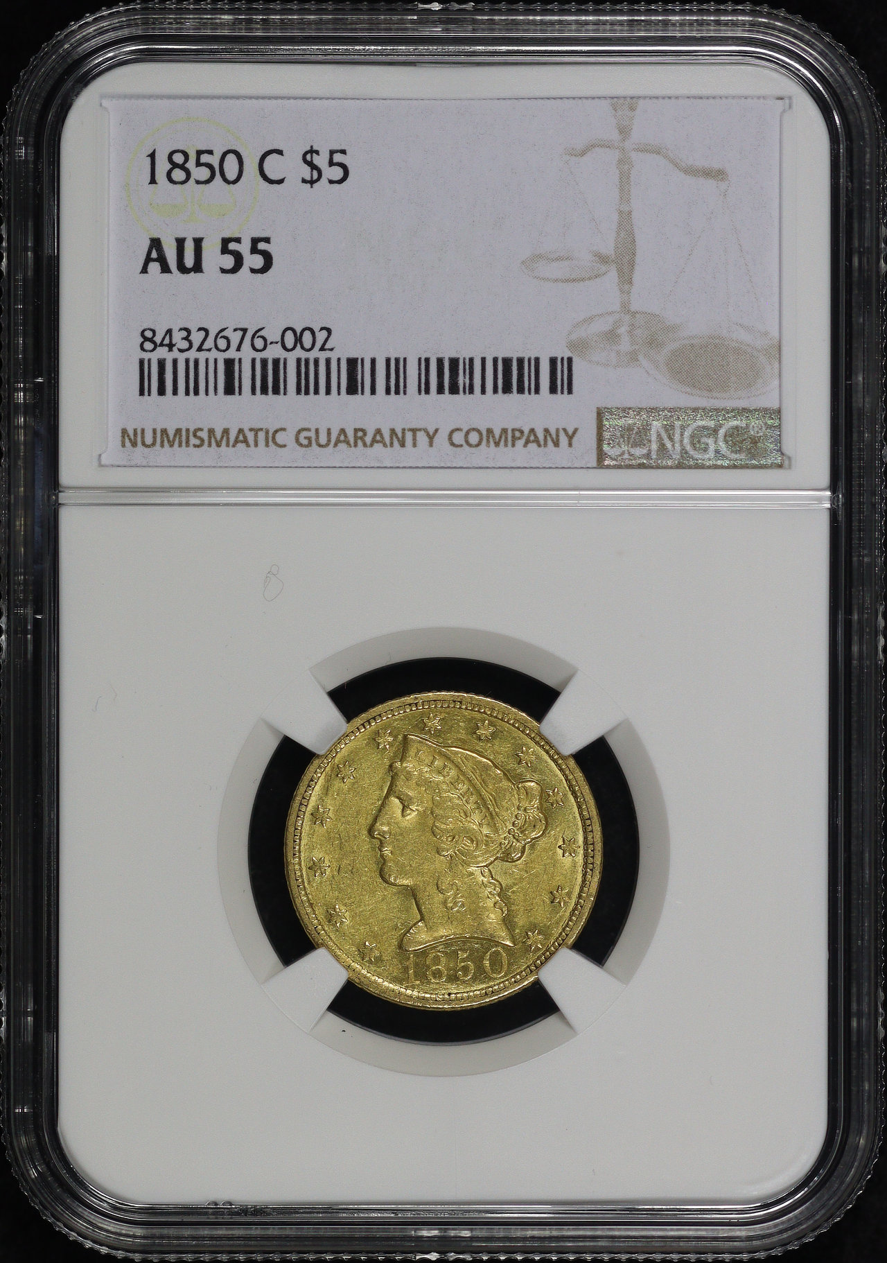 1850-C Liberty Head $5 NGC AU-55.