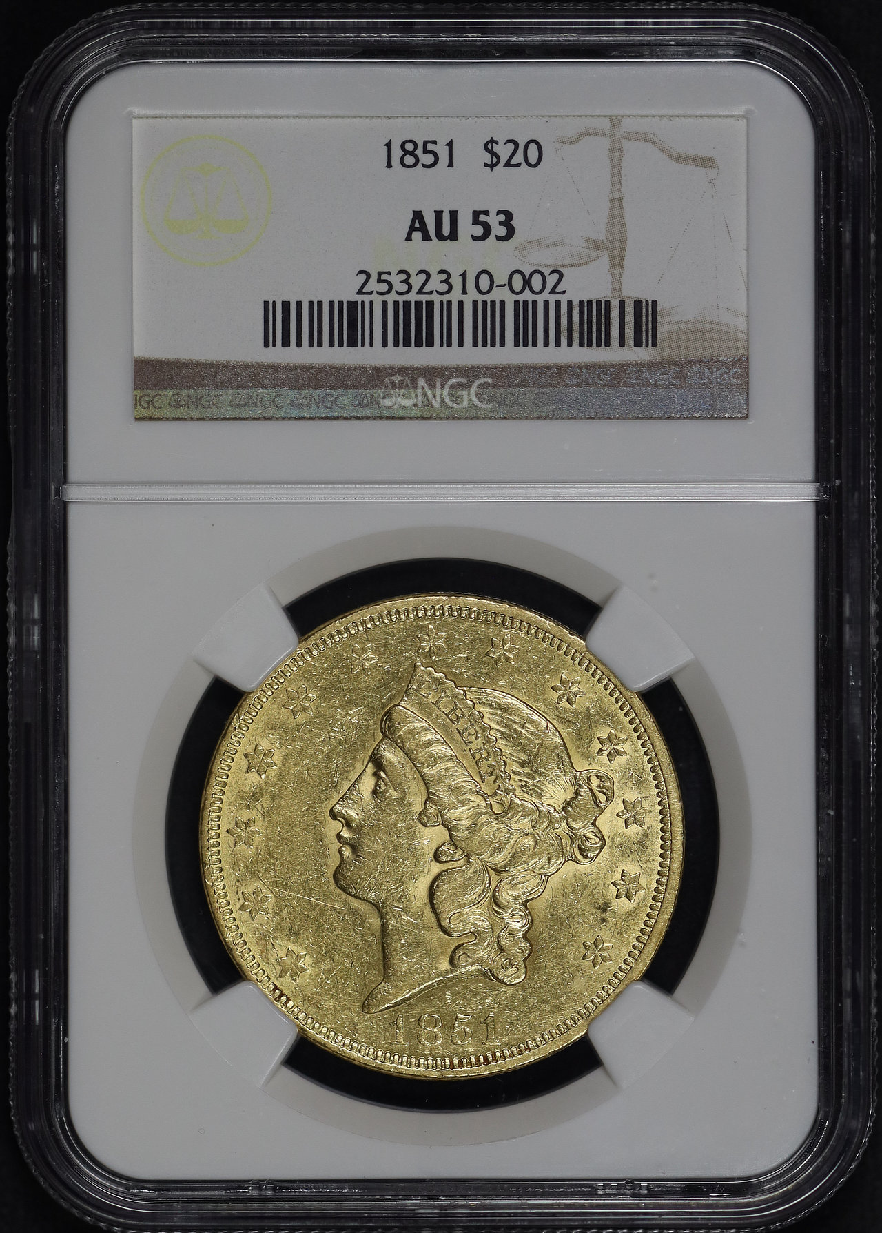 1851 Liberty Head $20 Type 1 NGC AU-53.