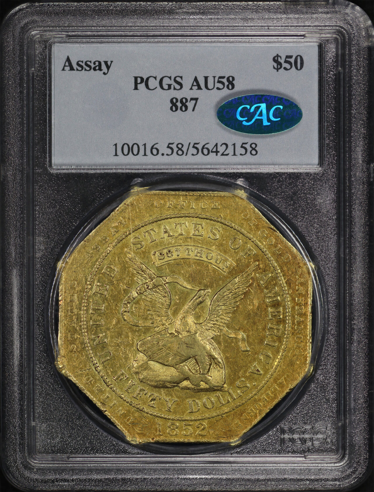 1852 $50 California Gold U.S. Assay Office PCGS AU-58.