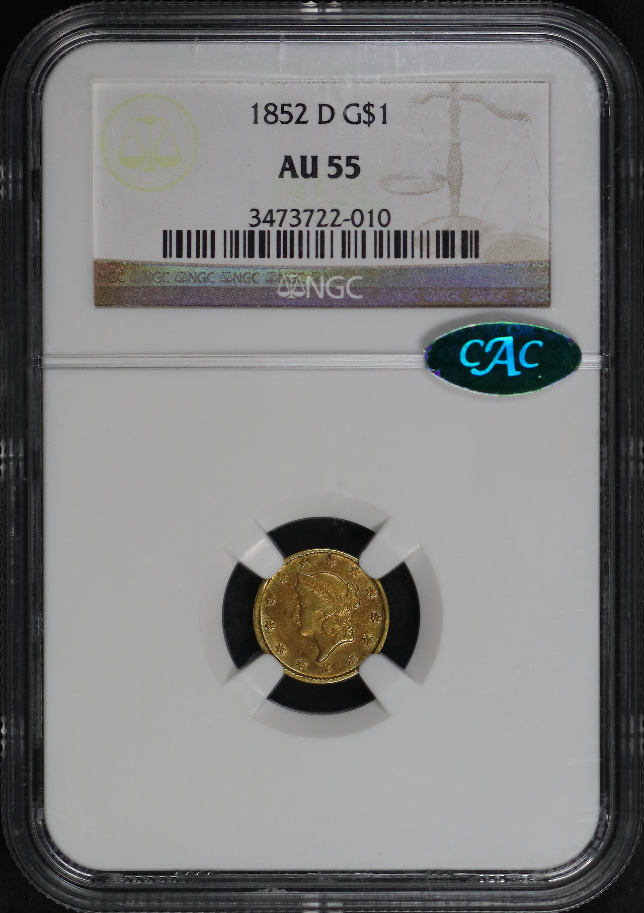1852-D Gold Dollar NGC AU-55 CAC.