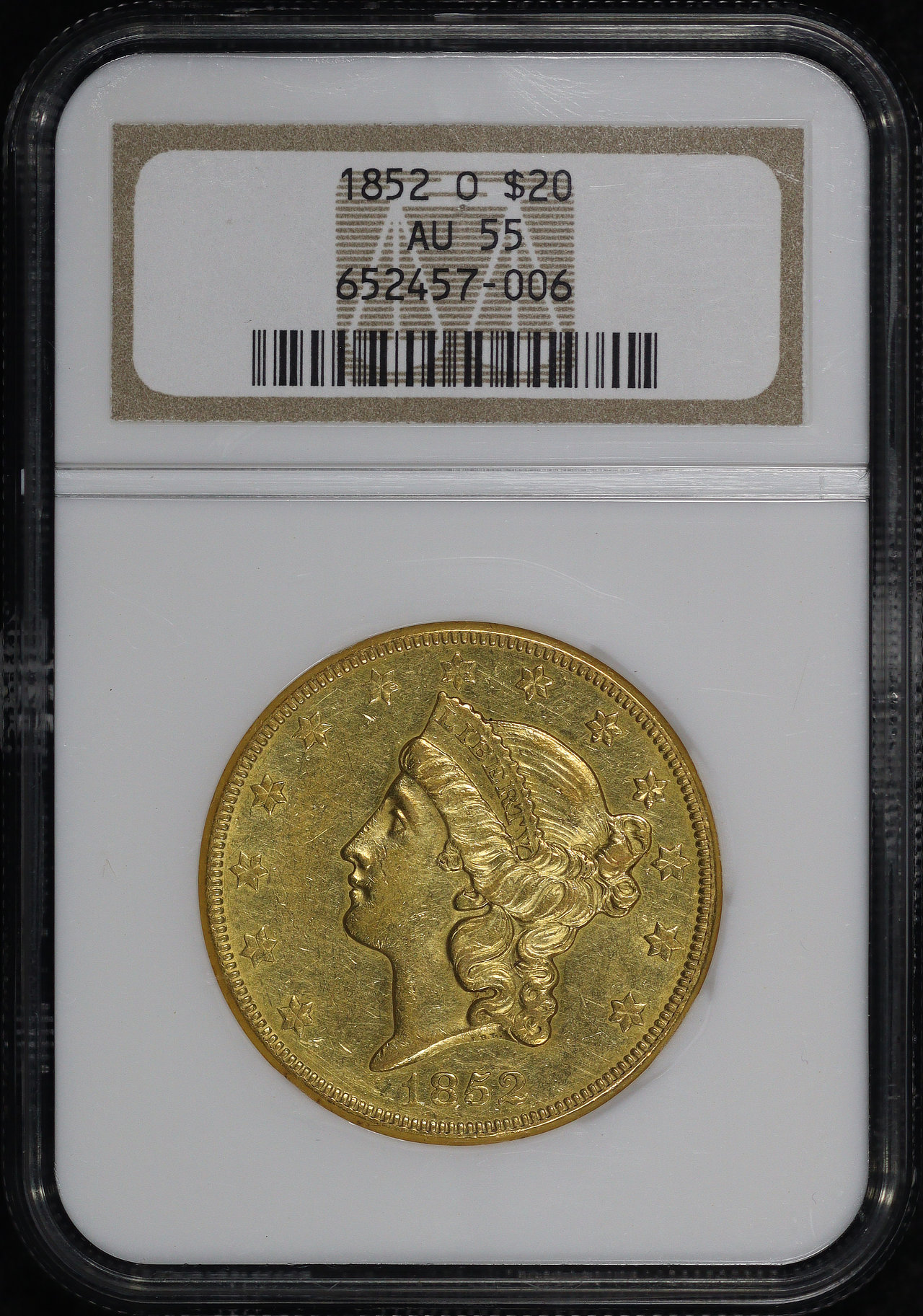 1852-O Liberty Head $20 Type 1 NGC AU-55.