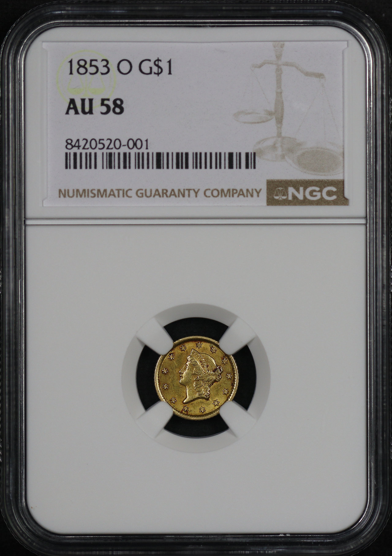 1853-O Gold Dollar NGC AU-58