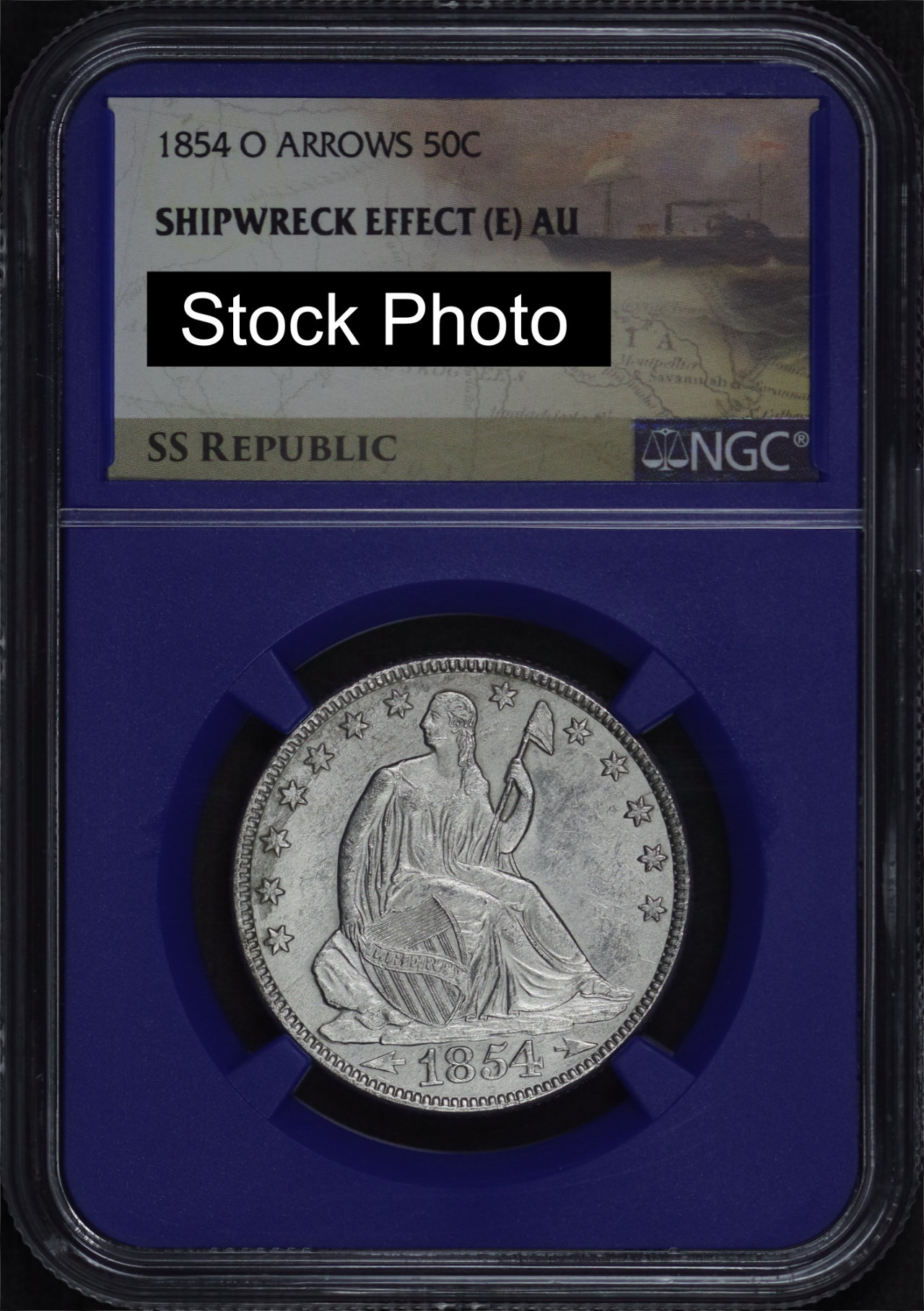 1854-O Arrows Liberty Seated Half Dollar NGC AU Shipwreck SS Republic The Final Voyage with Box