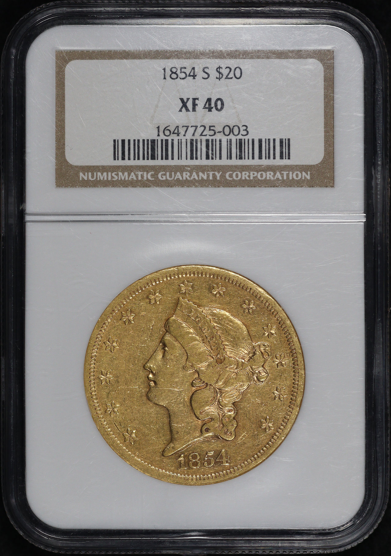1854-S Liberty Head $20 Type 1 NGC XF-40.