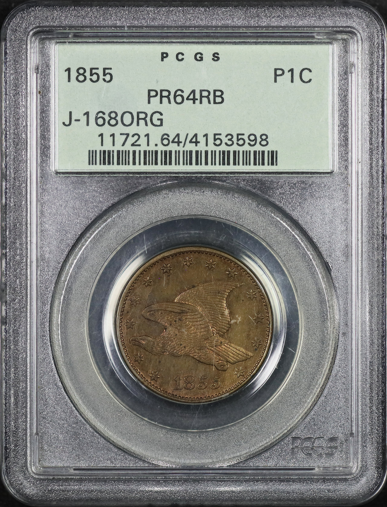 1855 1C Patterns J-168 Original PCGS PR-64 RB Old Green Holder
