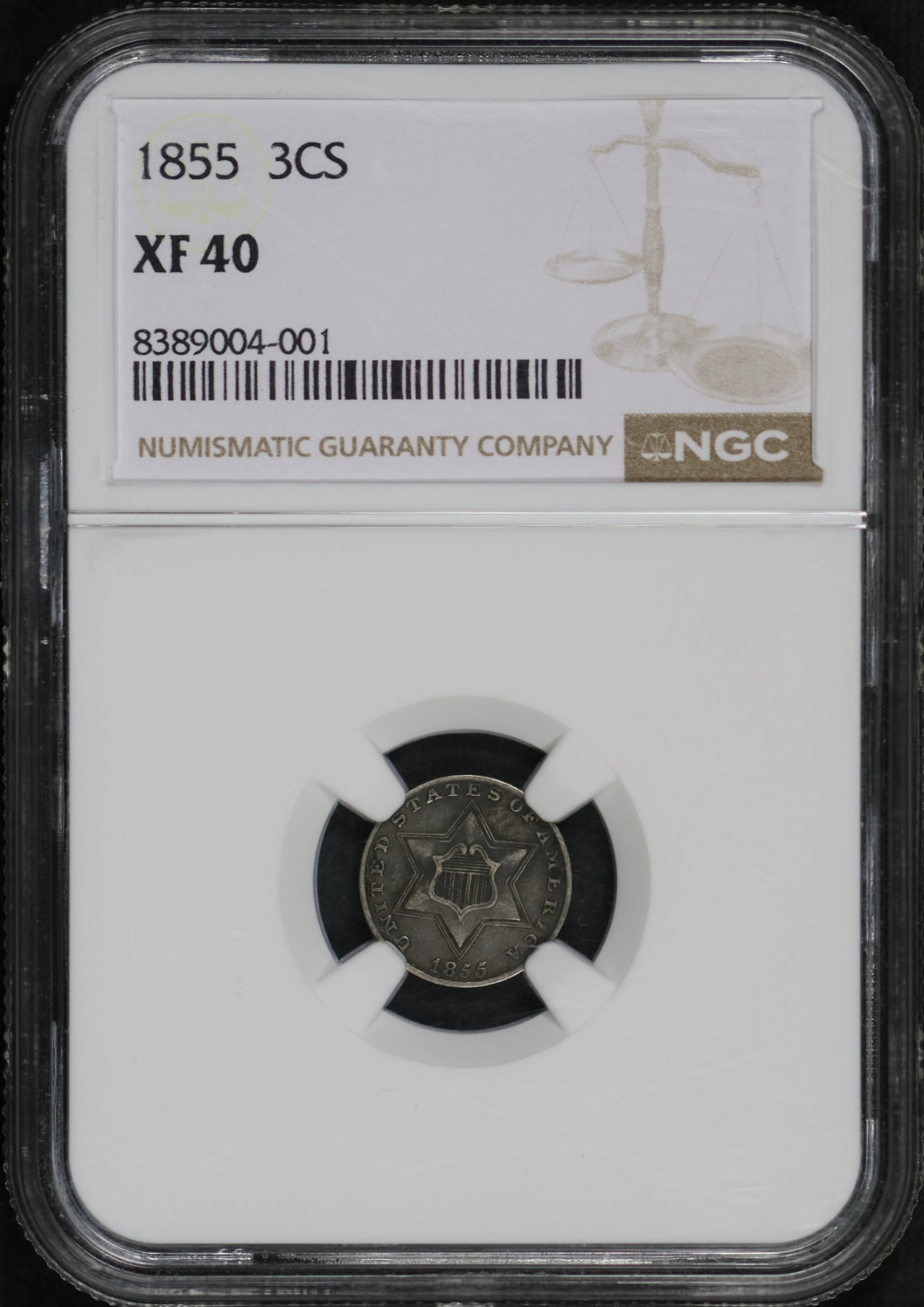 1855 Three Cent Silver NGC XF-40.