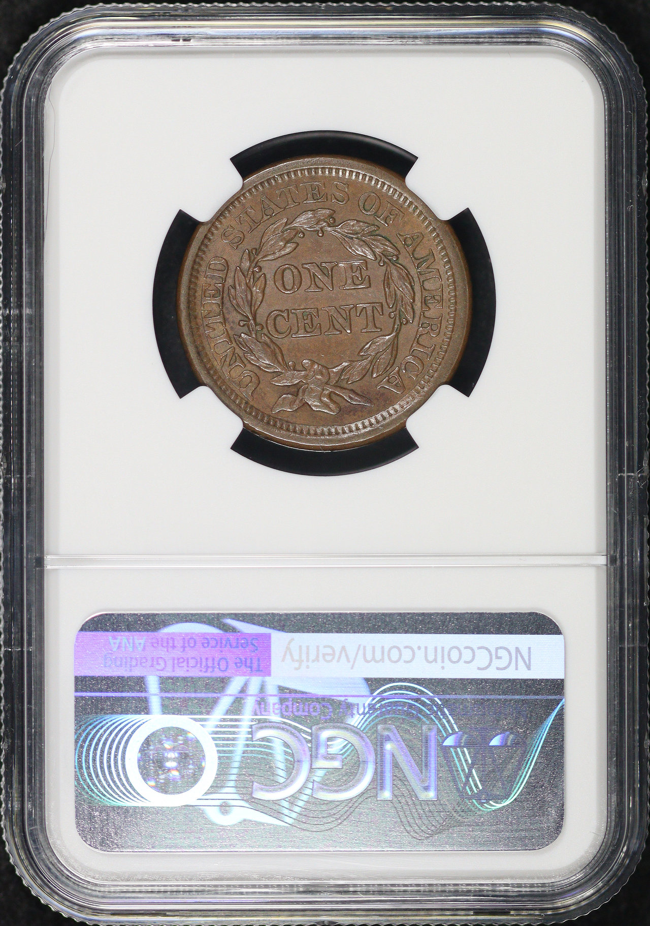 1856 Slanted 5 Braided Hair Cent NGC MS-62 BN.