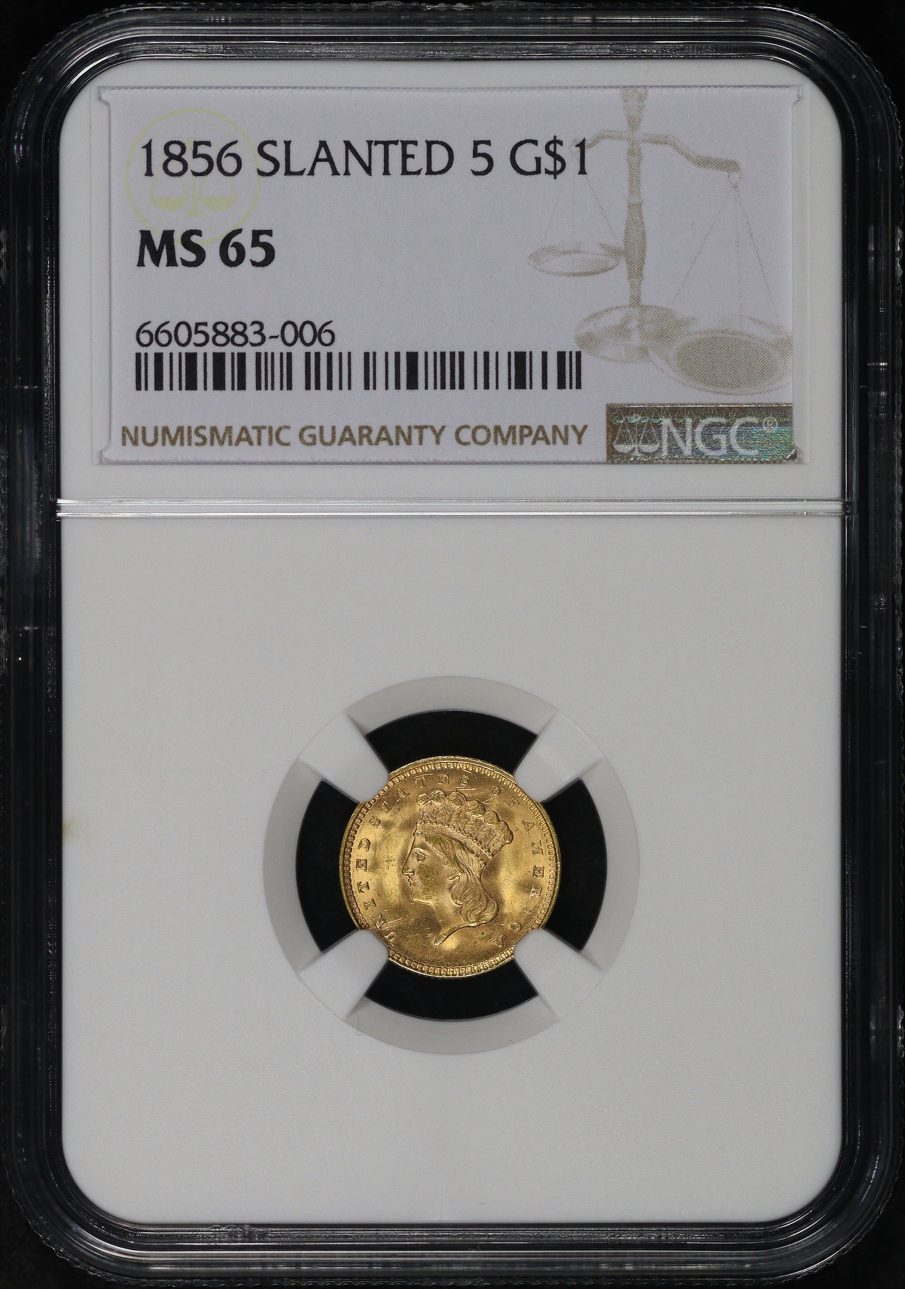 1856 Slanted 5 Type 3 Gold Dollar NGC MS-65.