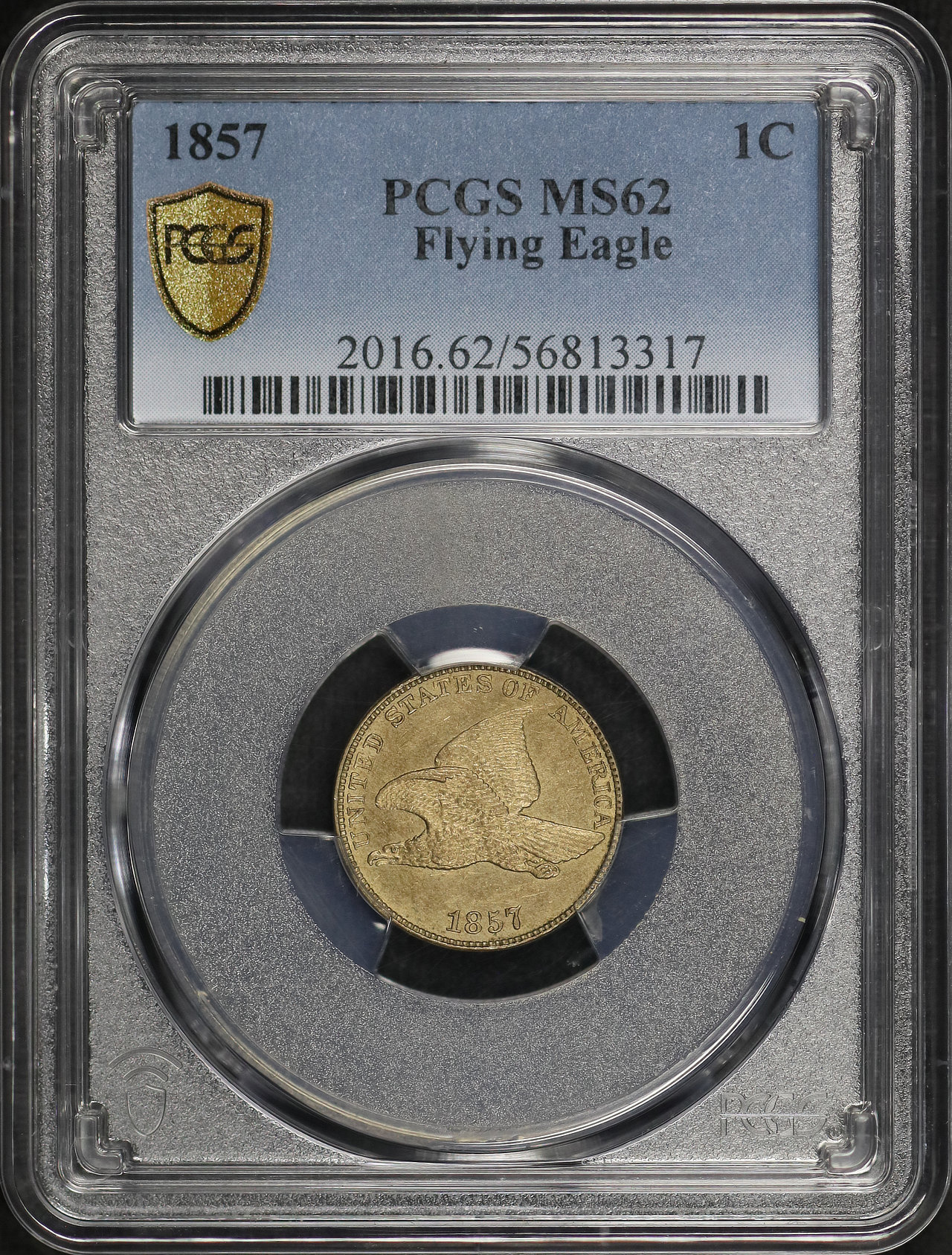 1857 Flying Eagle Cent PCGS MS-62 designed by James Barton Longacre.