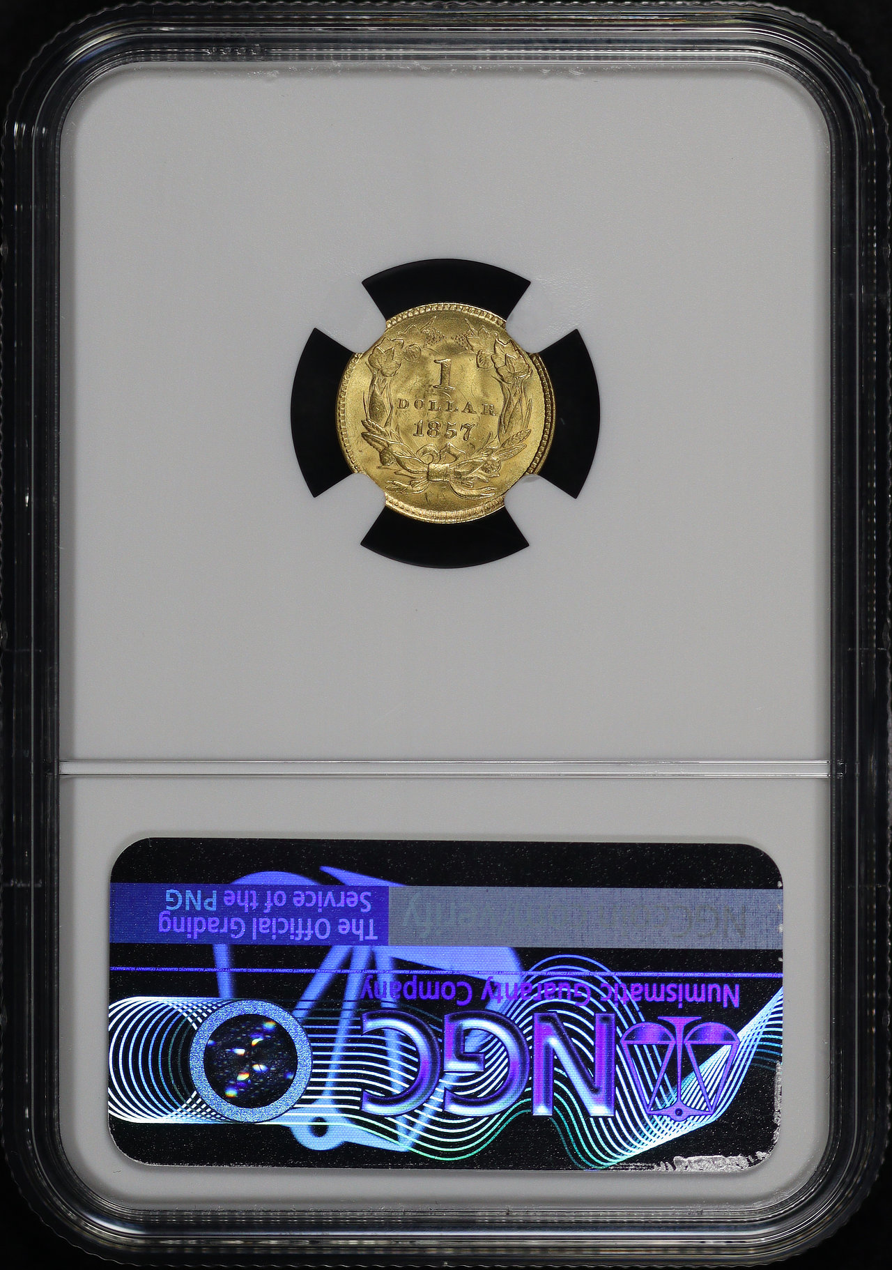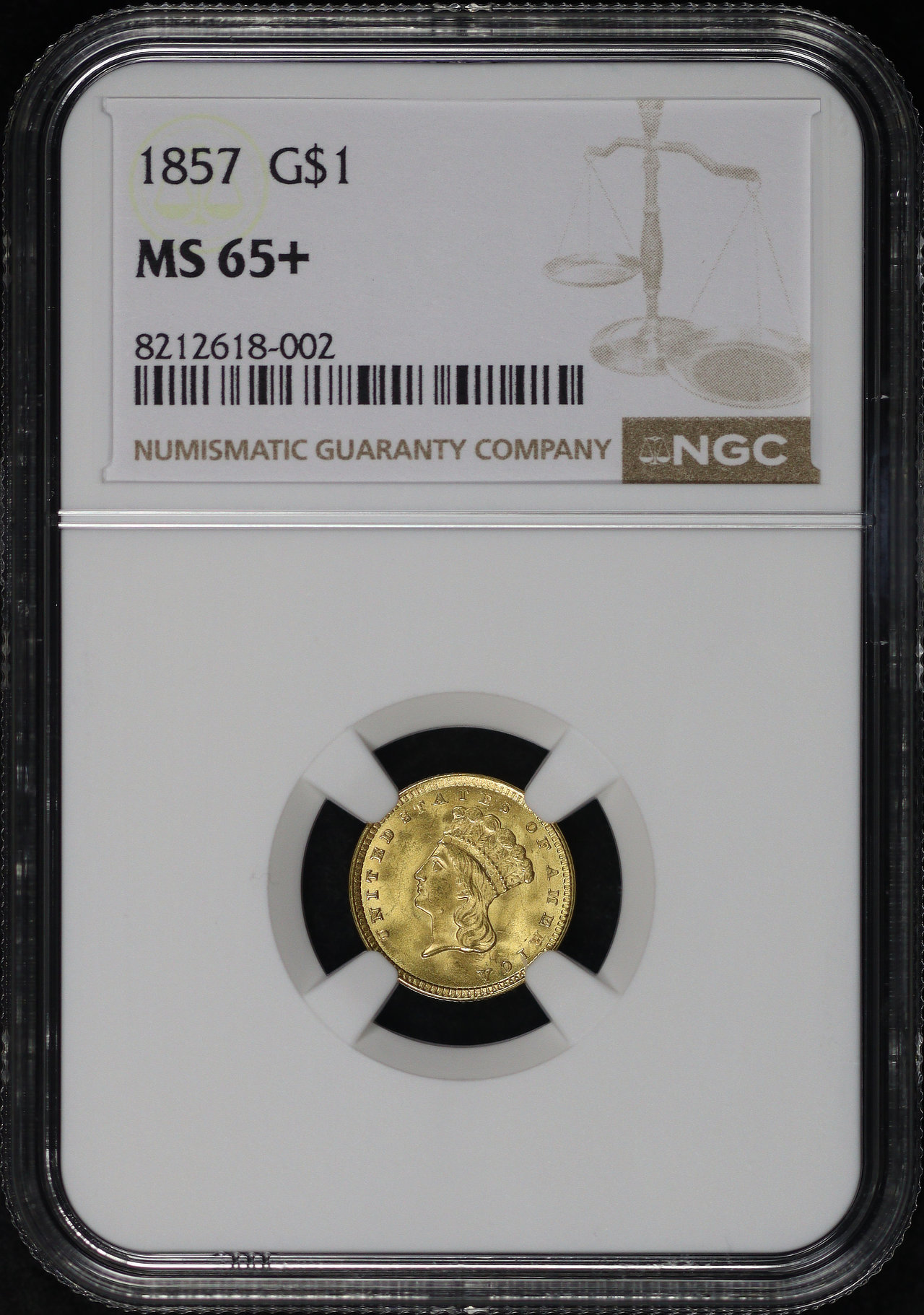 1857 Type 3 Gold Dollar NGC MS-65+.