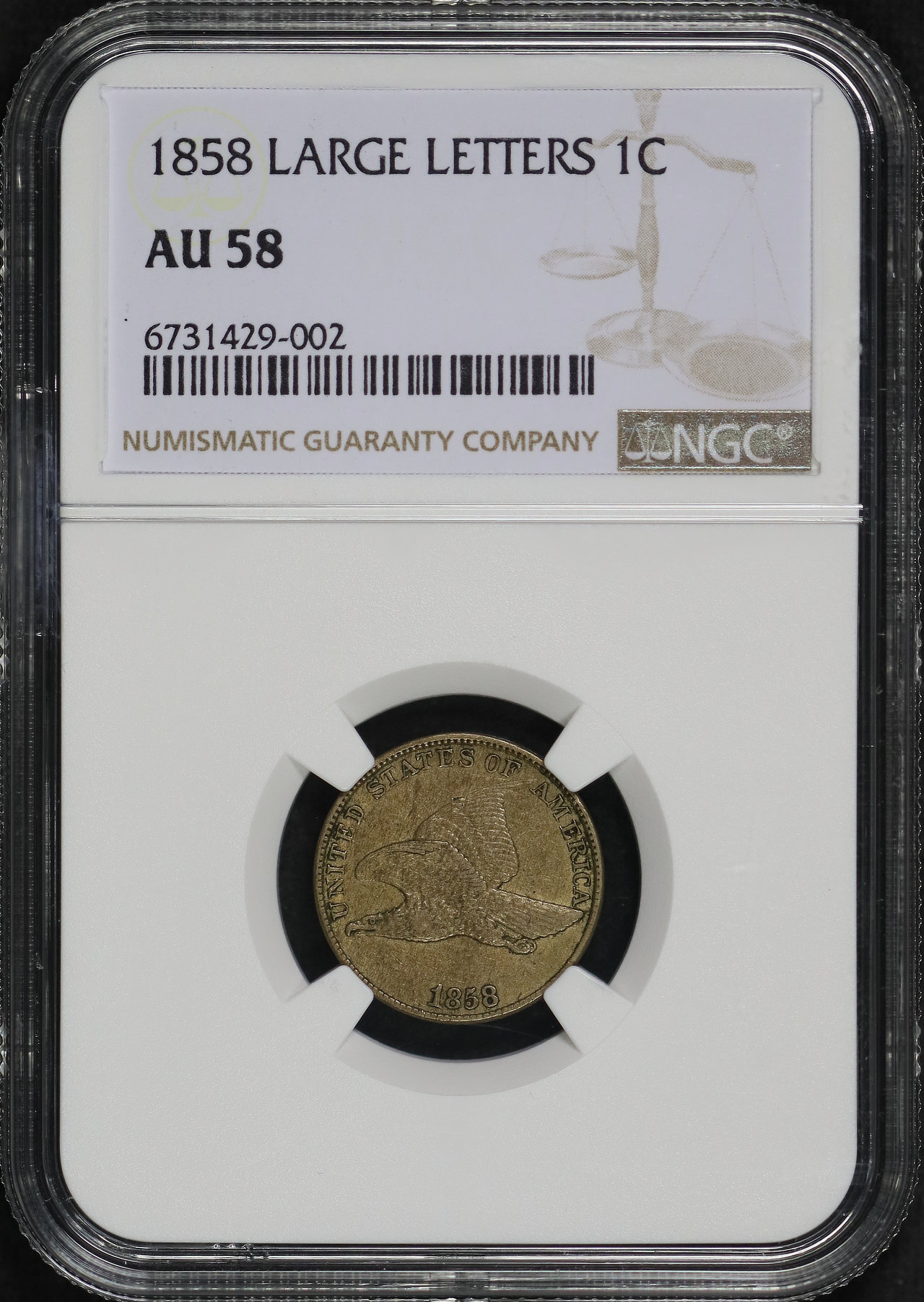 1858 Large Letters Flying Eagle Cent NGC AU-58.