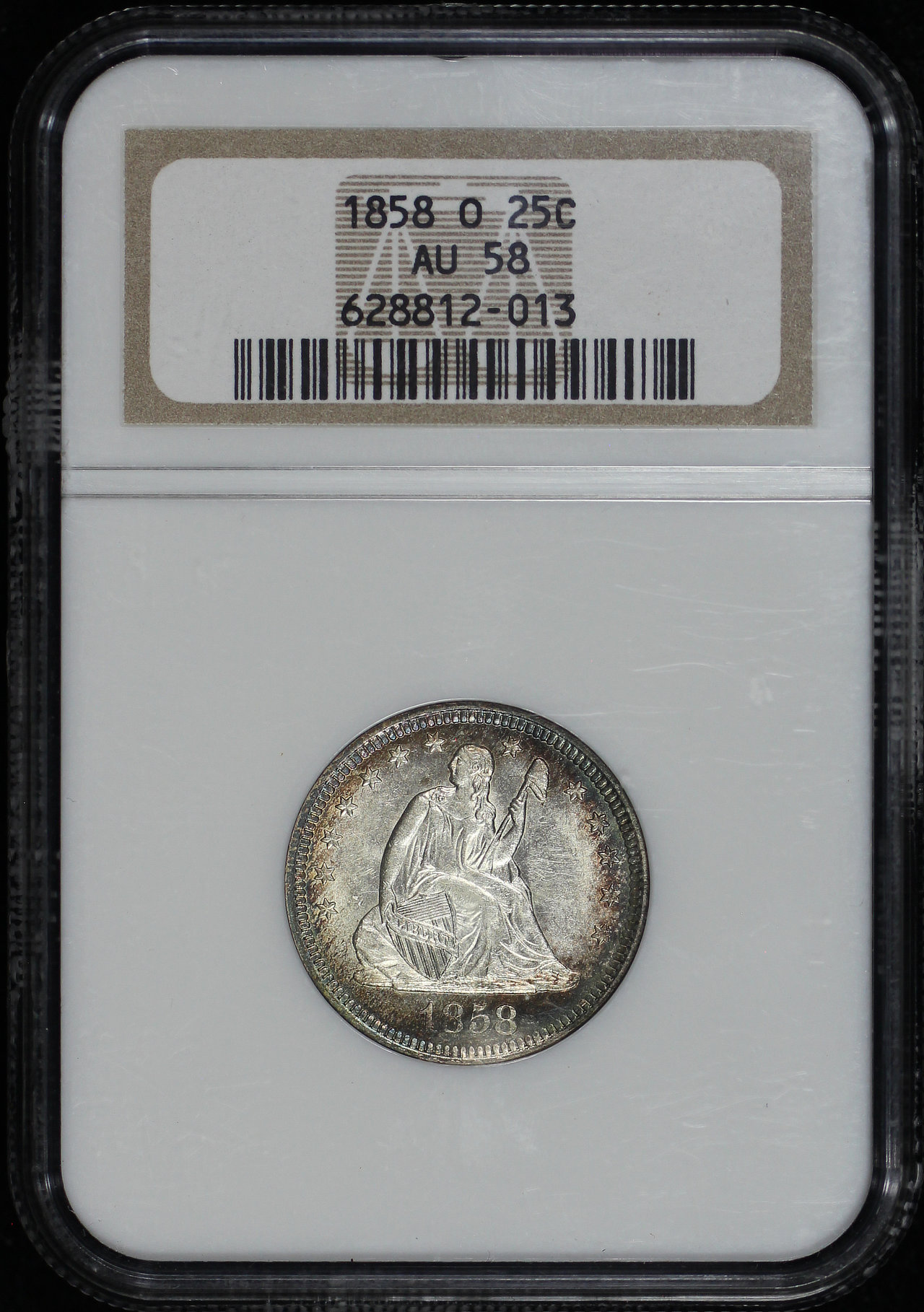 1858-O Liberty Seated Quarter NGC AU-58