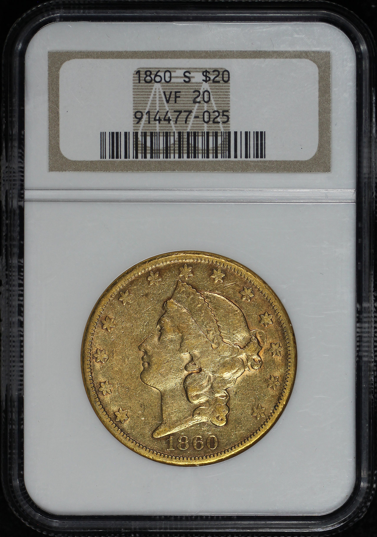 1860-S Liberty Head $20 Type 1 NGC VF-20.