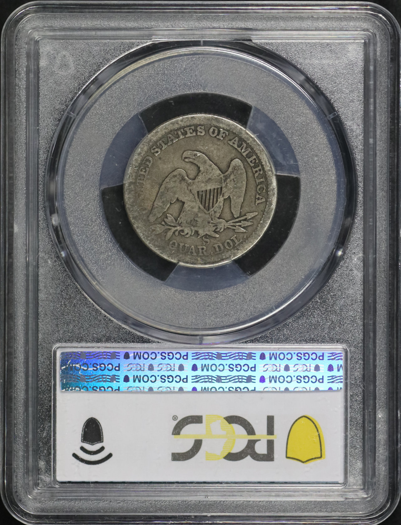 1860-S Liberty Seated Quarter PCGS VG-10 designed by Robert Ball Hughes and Christian Gobrecht.