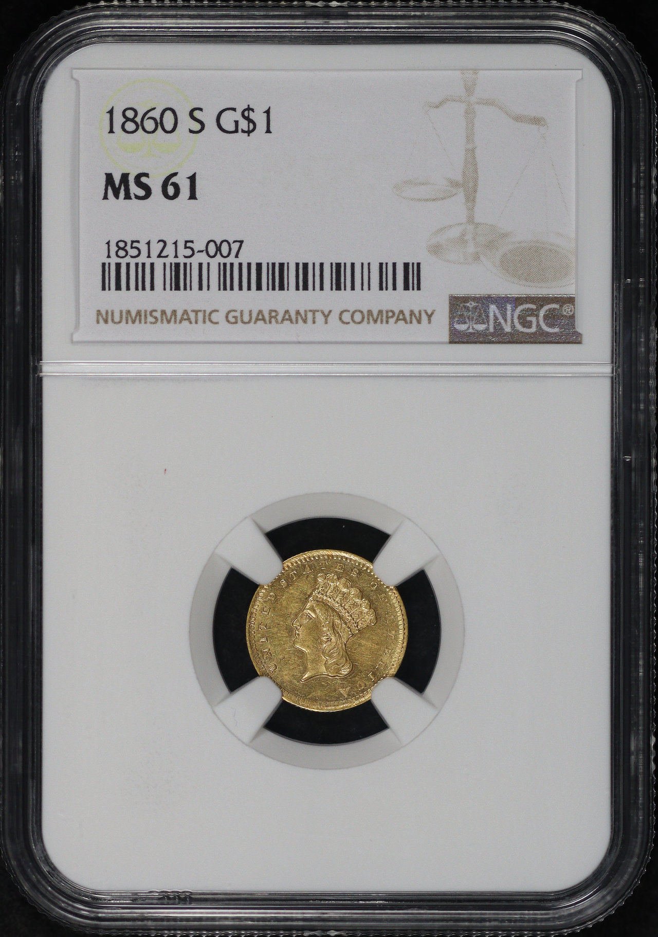 1860-S Type 3 Gold Dollar NGC MS-61.