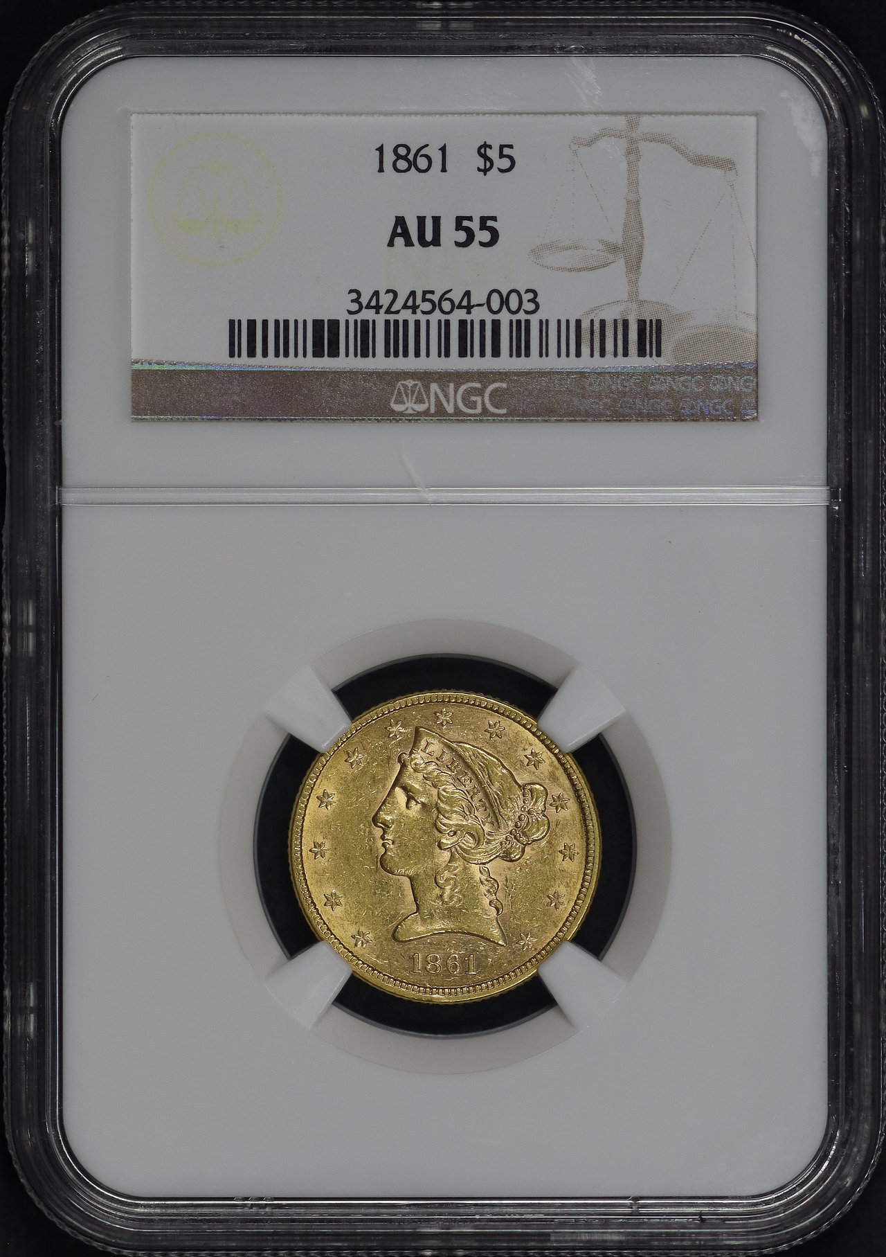 1861 Liberty Head $5 NGC AU-55.