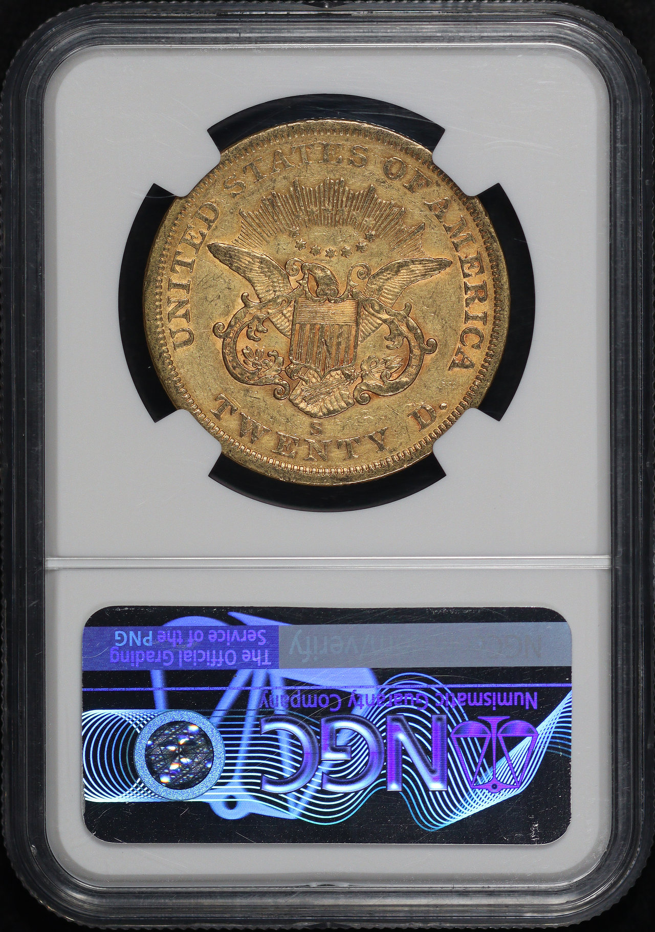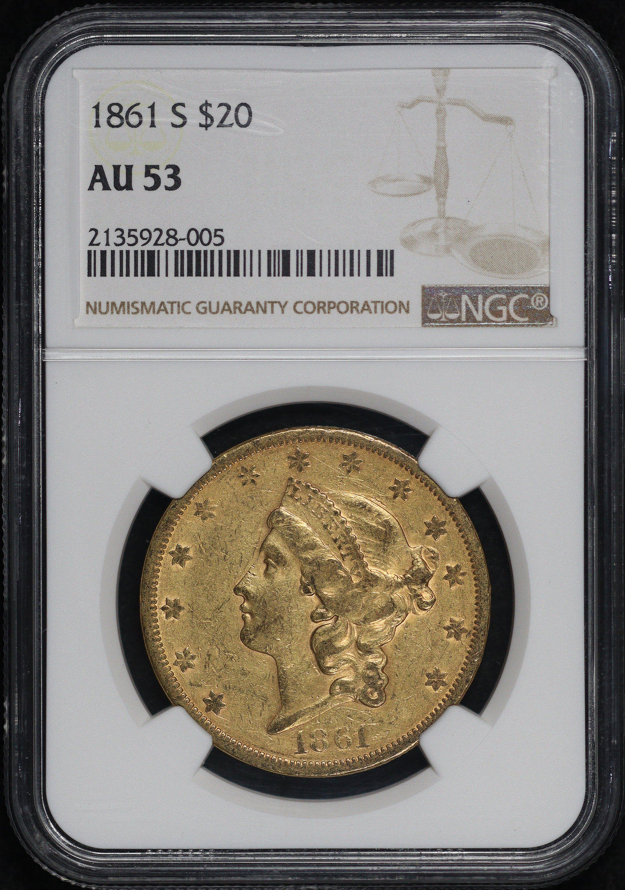 1861-S Liberty Head $20 Type 1 NGC AU-53.