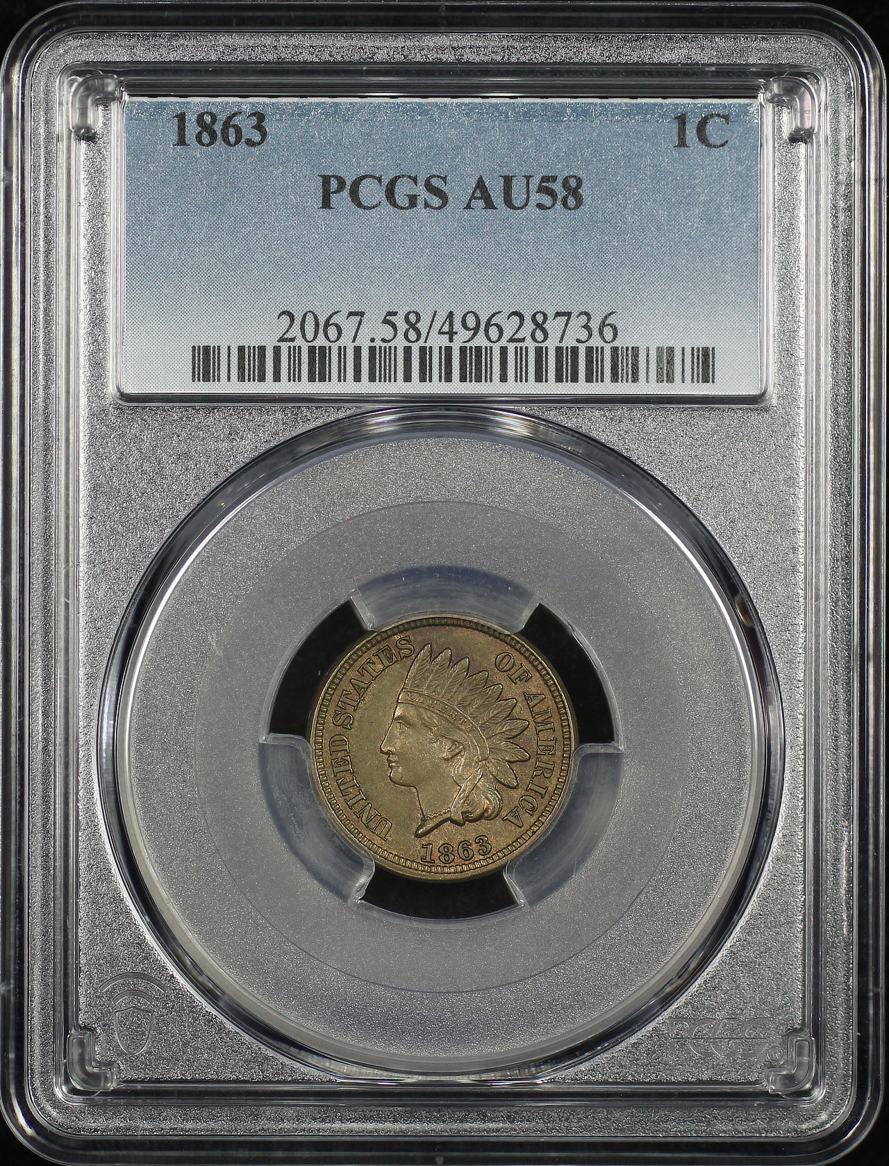 1863 Indian Cent PCGS AU-58 designed by James Barton Longacre.
