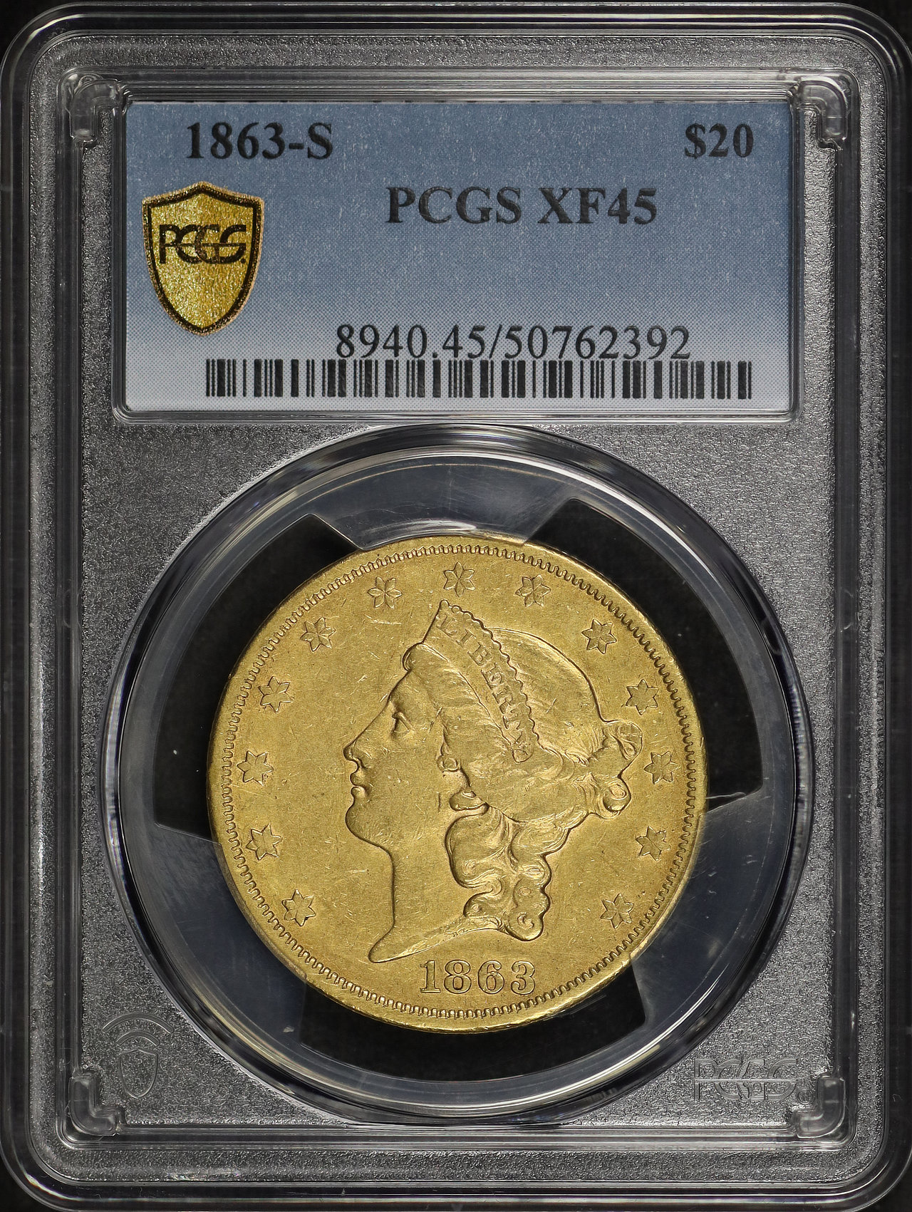 1863-S Liberty Head $20 Type 1 PCGS XF-45