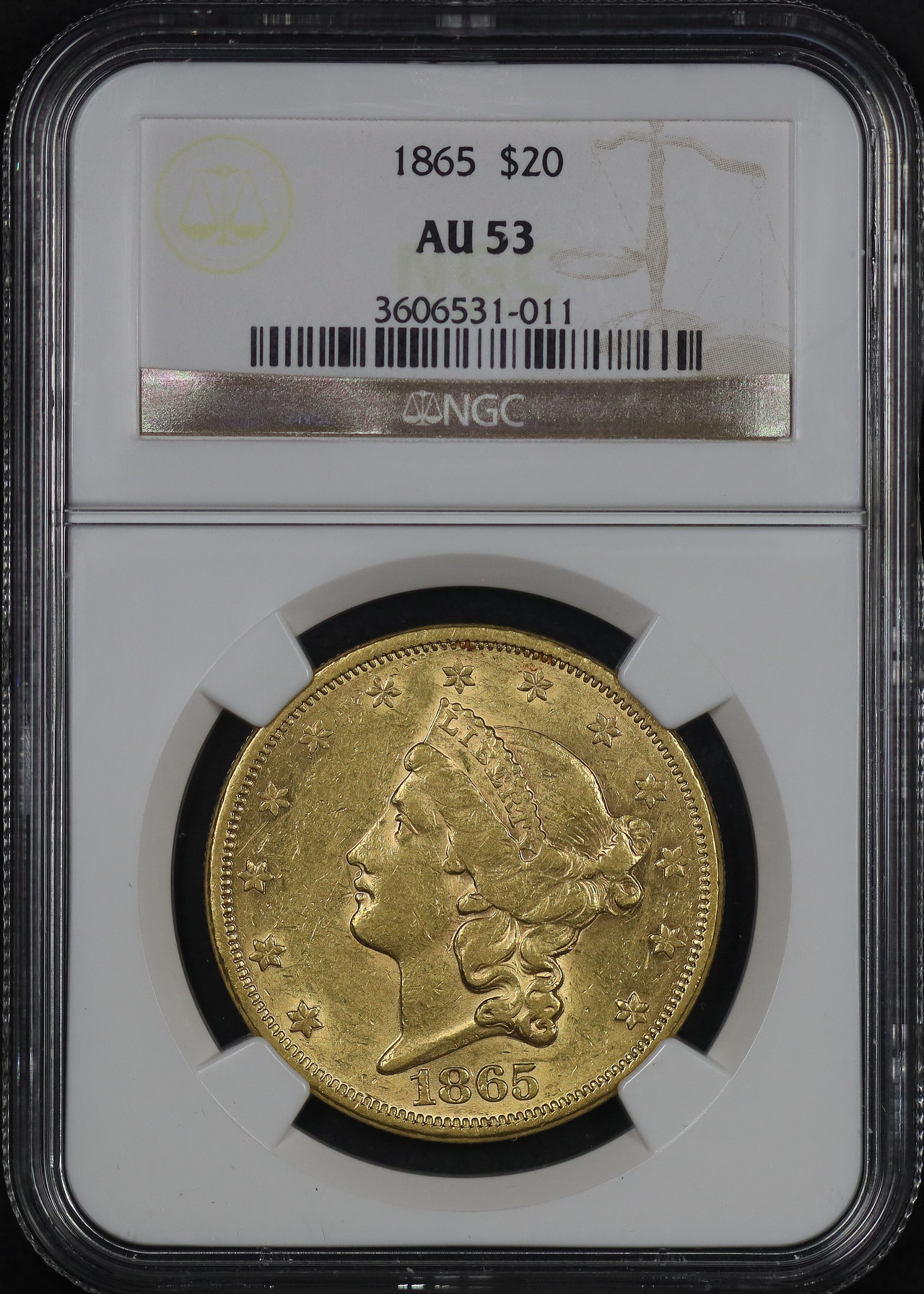 1865 Liberty Head $20 Type 1 NGC AU-53.