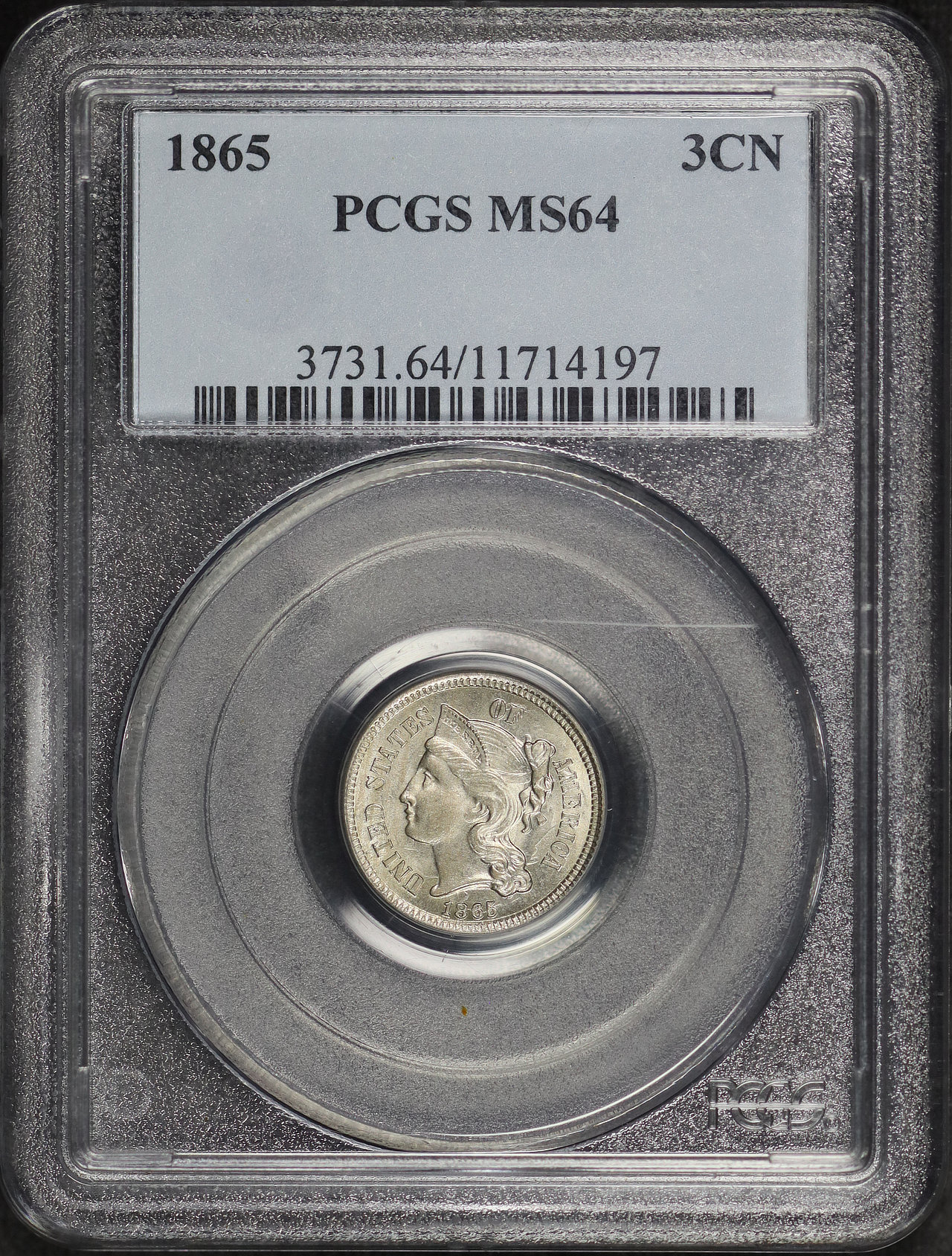 1865 Three Cent Nickel PCGS MS-64
