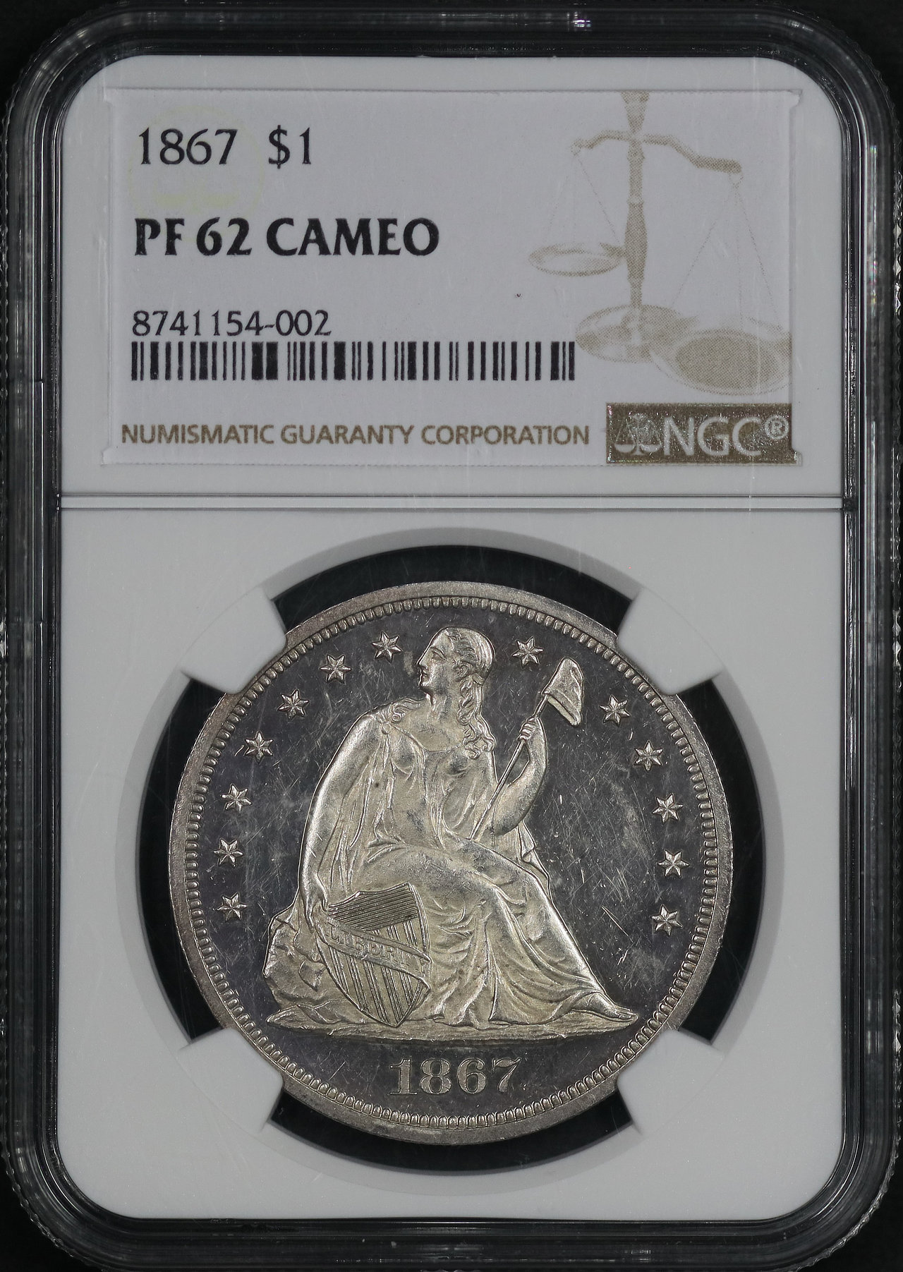 1867 Liberty Seated Dollar NGC PF-62 CAM.