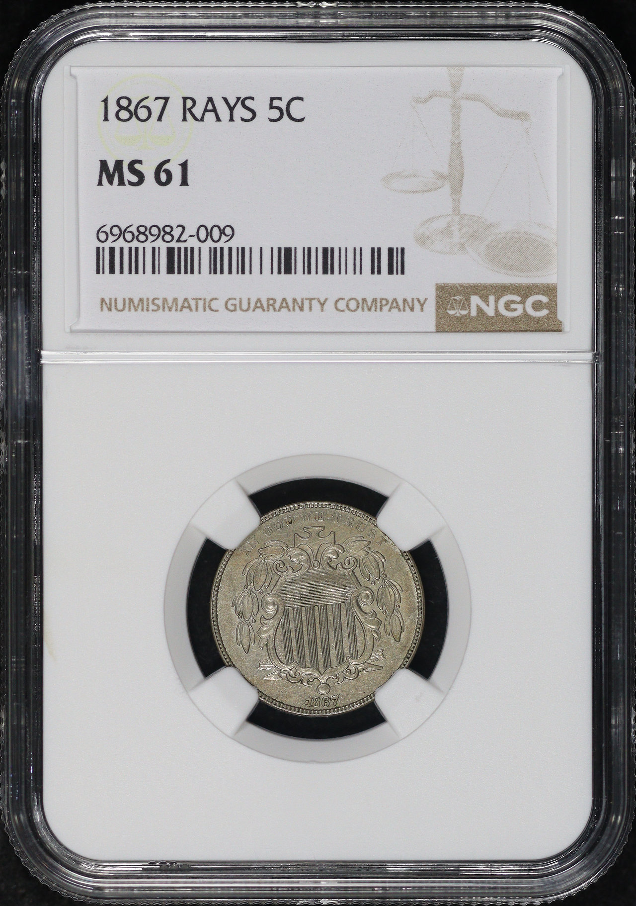 1867 Shield Nickel with Rays NGC MS-61.