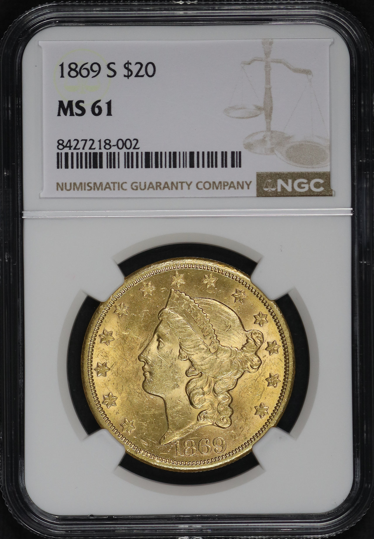1869-S Liberty Head $20 NGC MS-61.