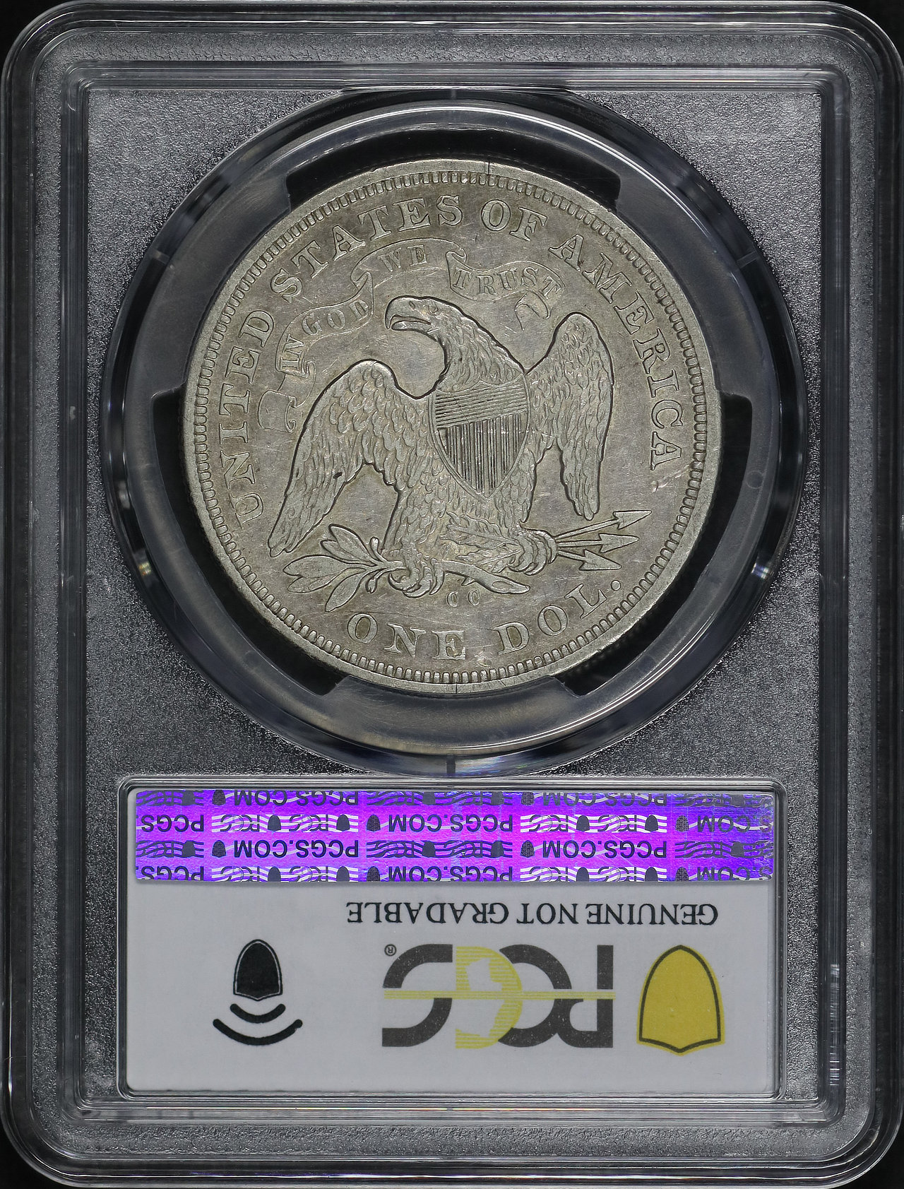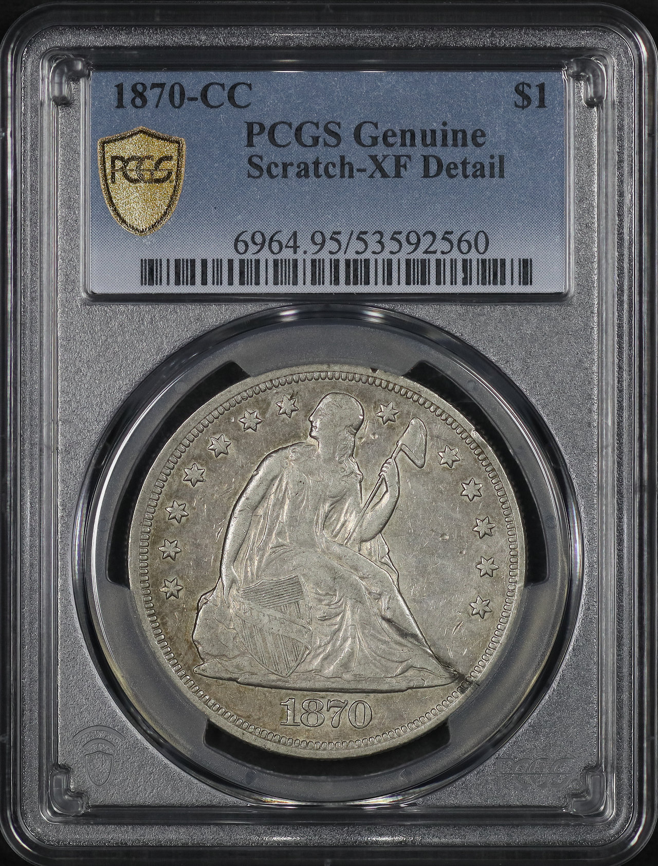 1870-CC Liberty Seated Dollar PCGS XF Details Scratch designed by Christian Gobrecht.