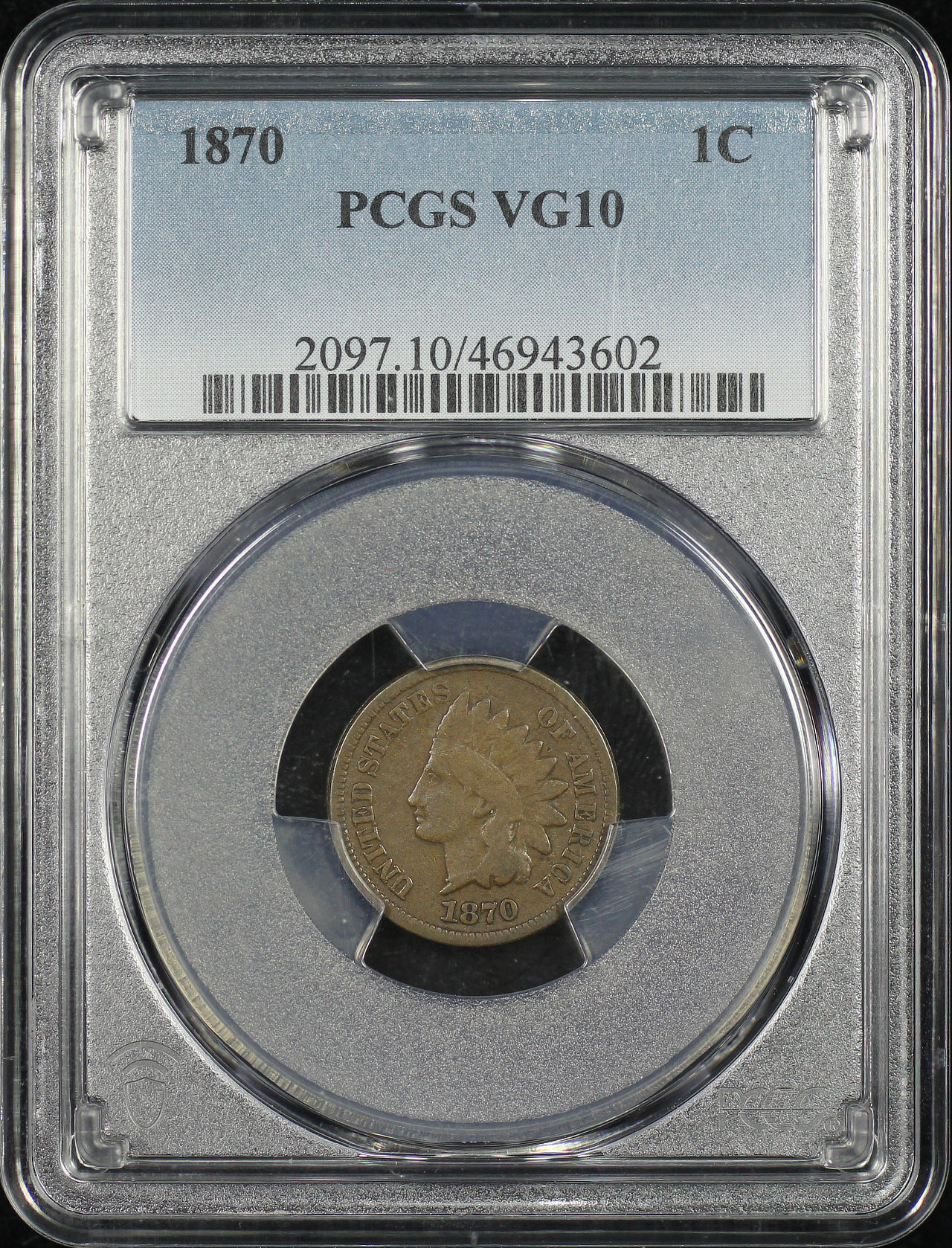 1870 Indian Cent PCGS VG-10 designed by James Barton Longacre.