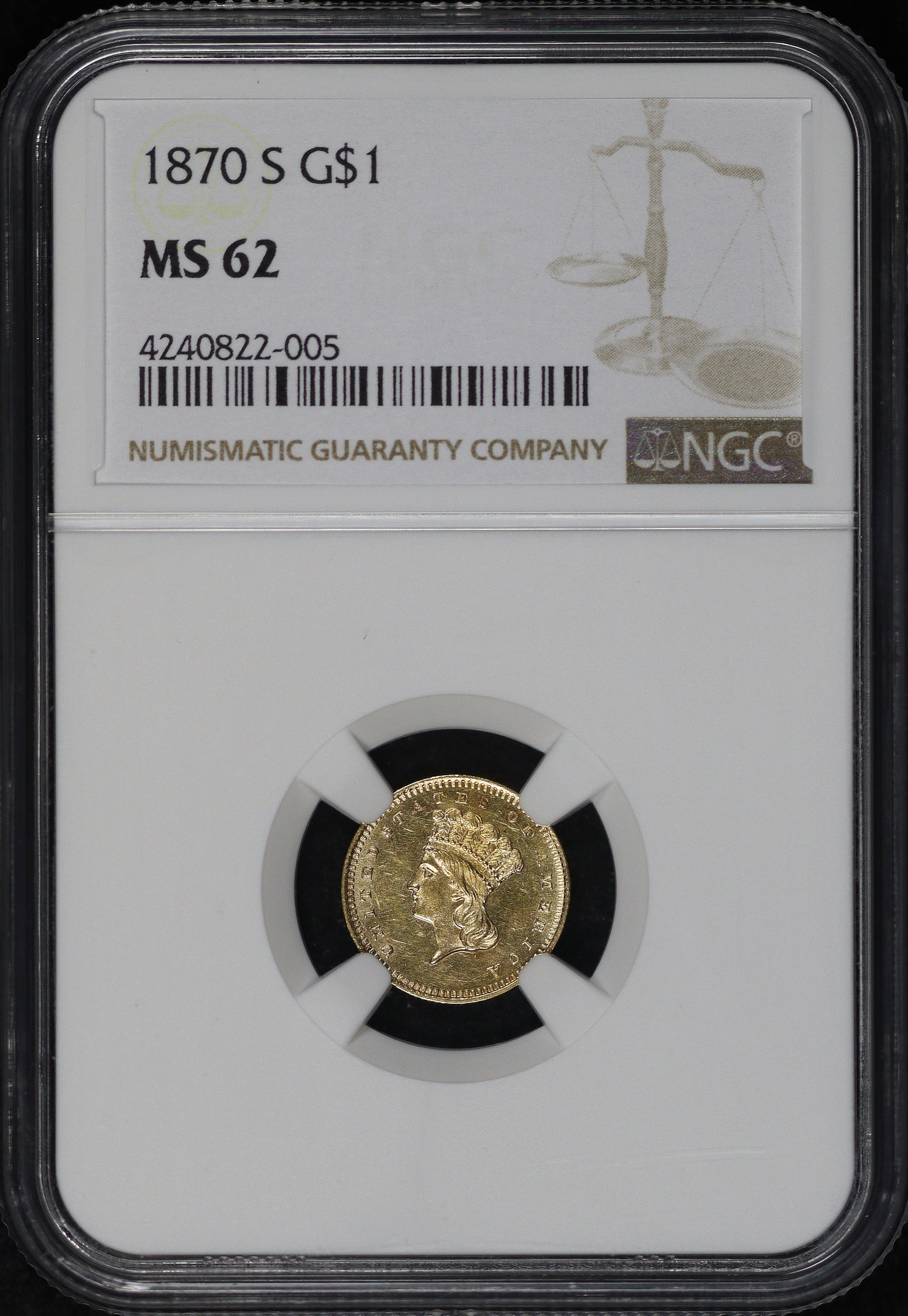 1870-S Gold Dollar Type 3 NGC MS-62.