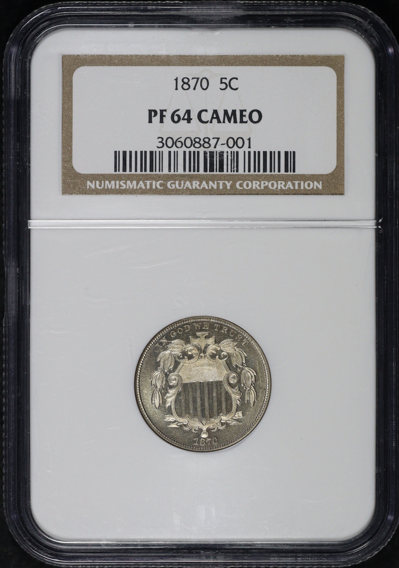 1870 Shield Nickel NGC PF-64 Cameo.
