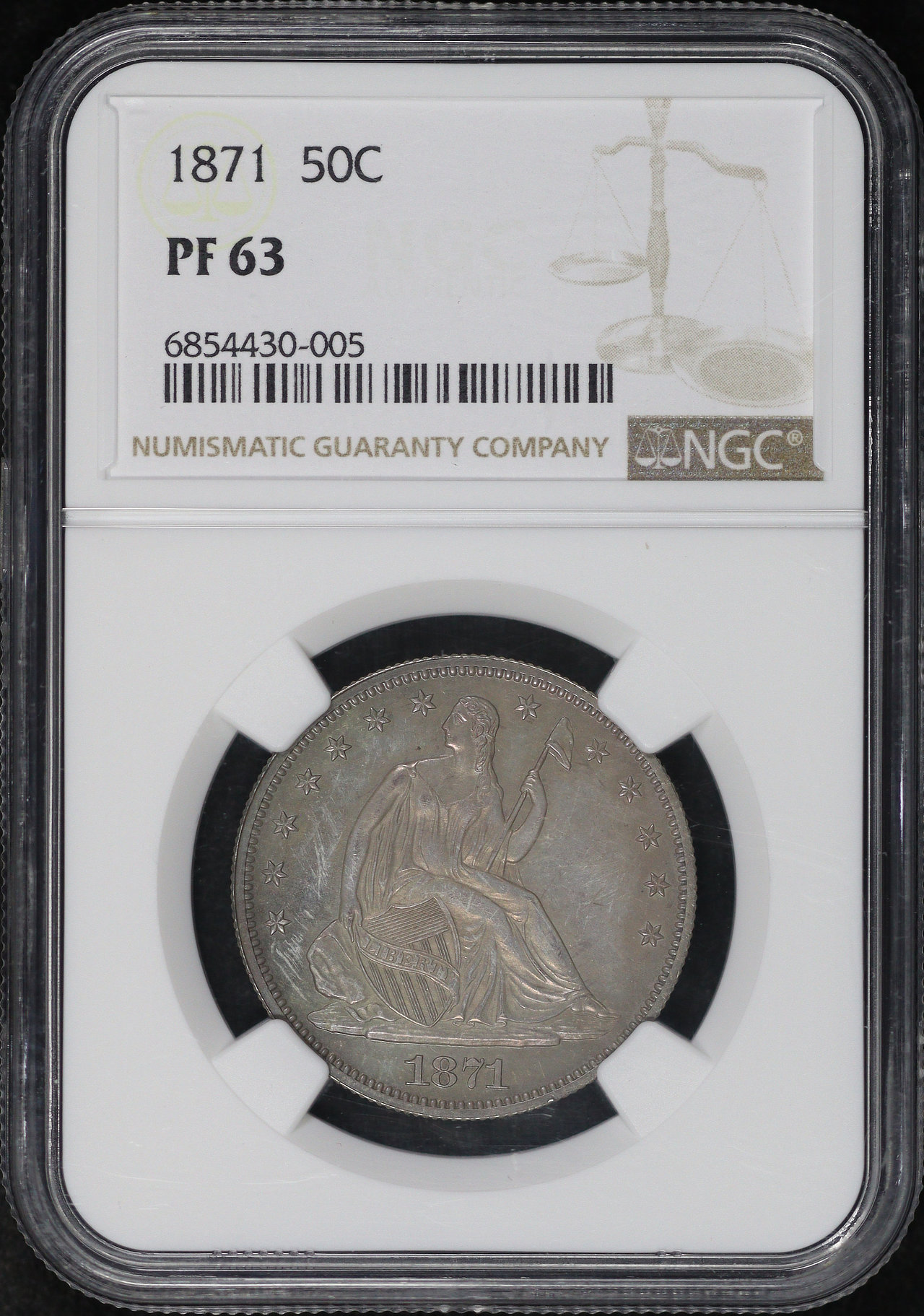1871 Liberty Seated Half Dollar NGC PF-63