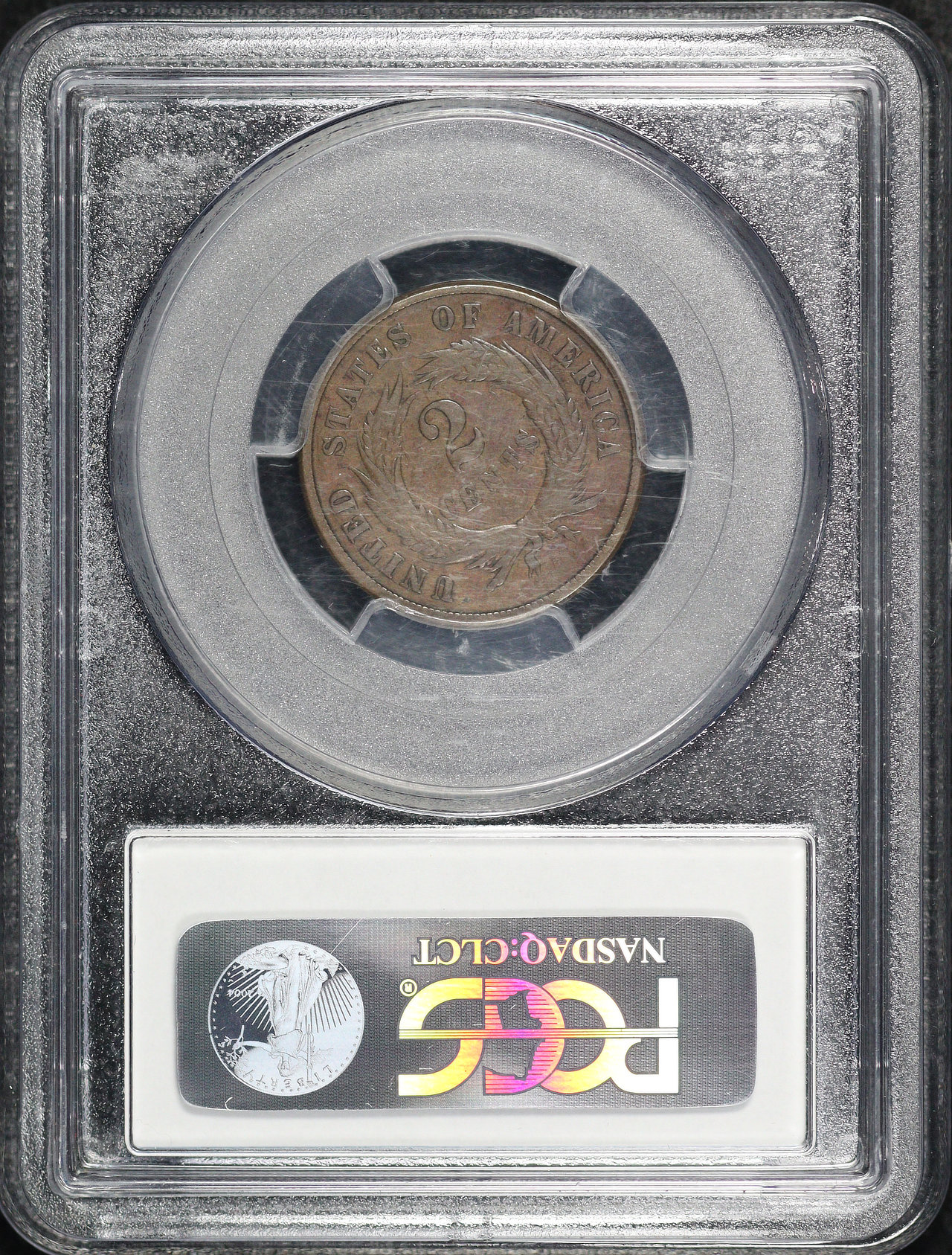 1871 Minor Variety Repunched Date Two Cent PCGS F-12 designed by James Barton Longacre.