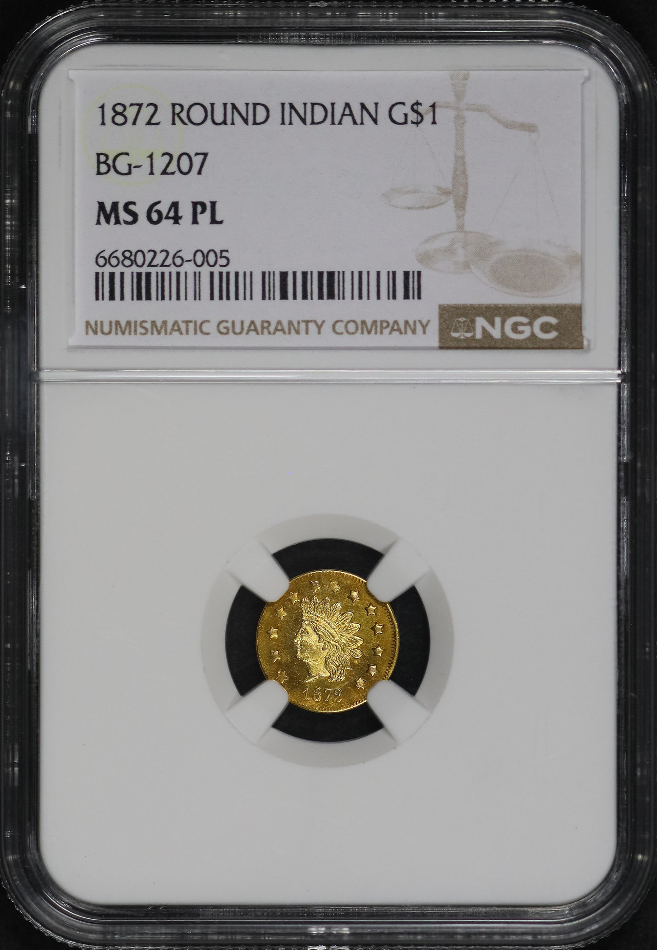 1872 BG-1207 G$1 Round Indian Gold Dollar Type 3 NGC MS-64 PL.