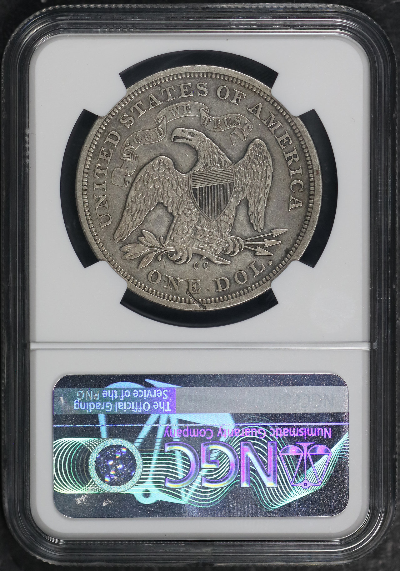 1872-CC Liberty Seated Dollar NGC XF-45 designed by Christian Gobrecht.