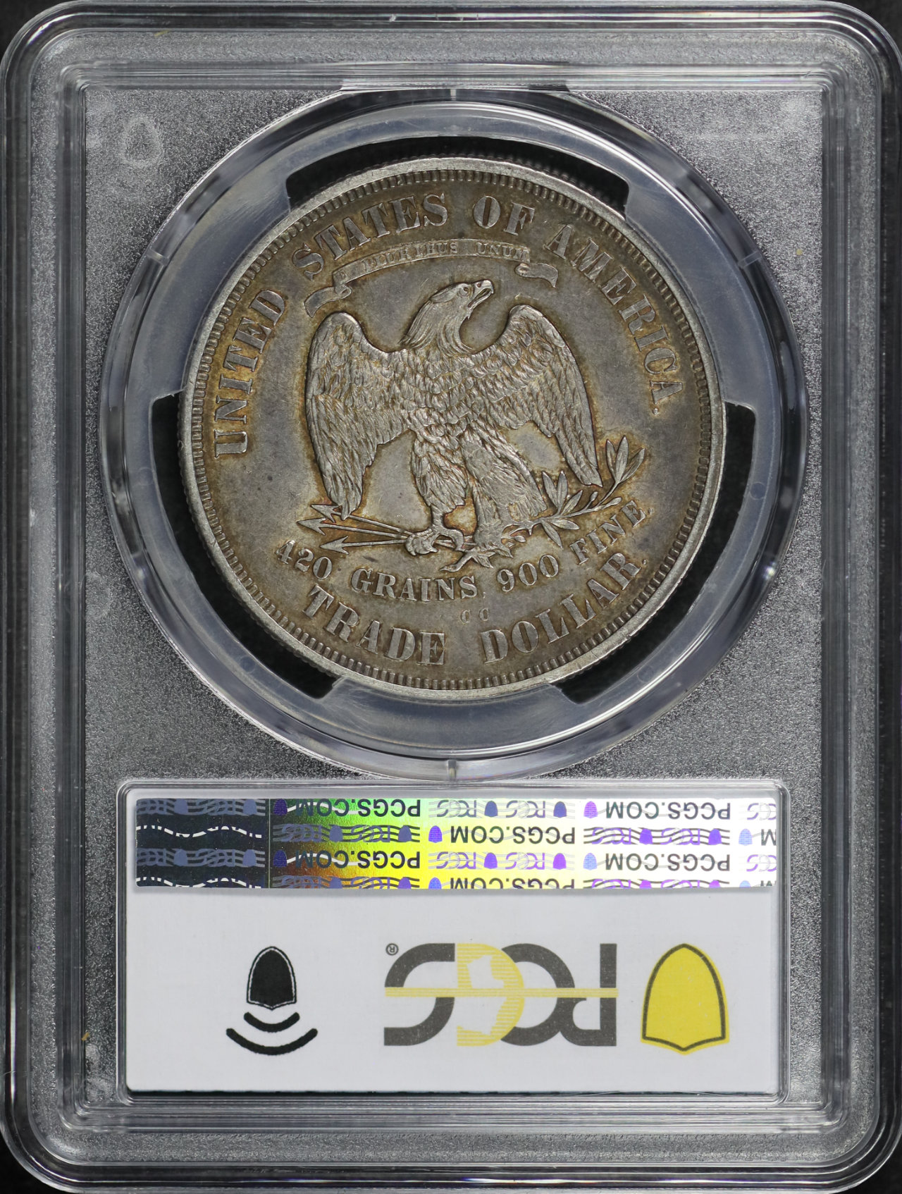 1873-CC Trade Dollar PCGS AU-55 CAC designed by William Barber.