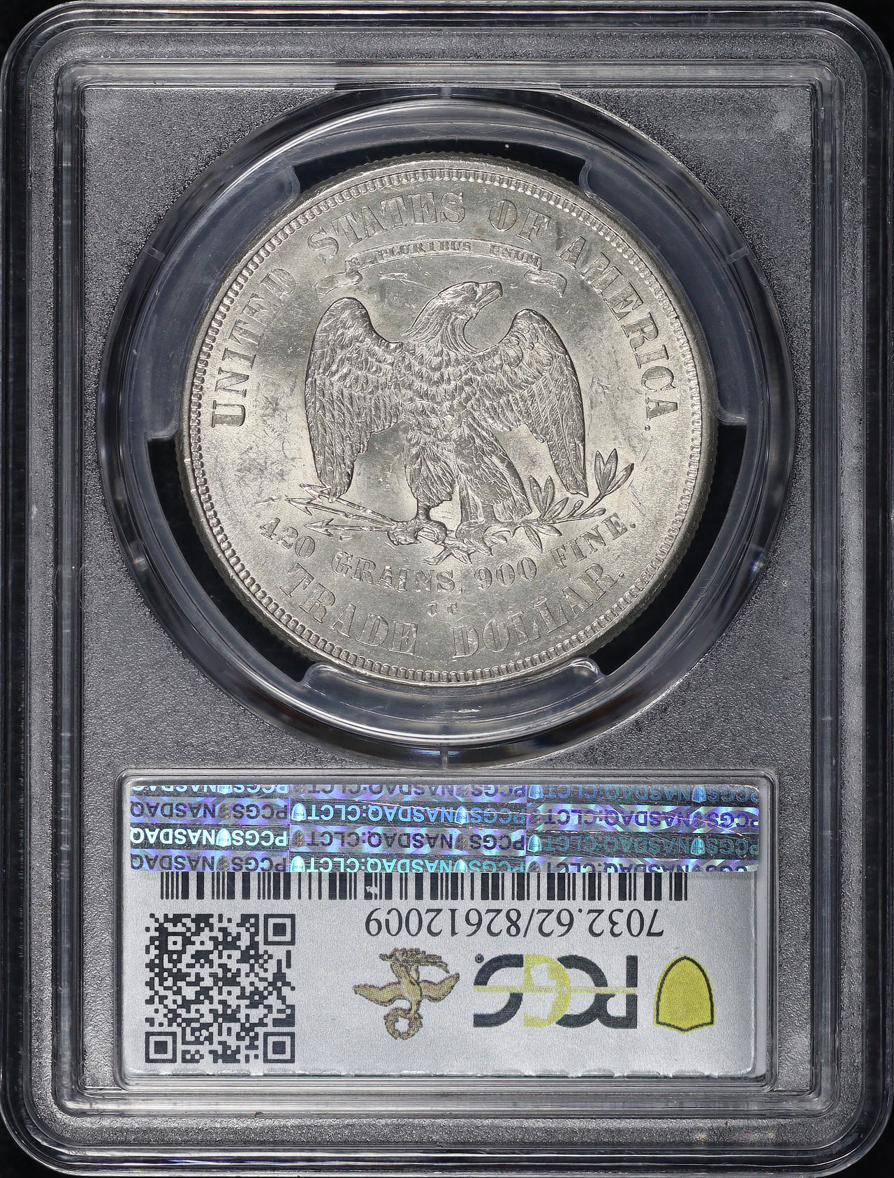 1873-CC Trade Dollar PCGS MS-62 D.L. Hansen Collection designed by William Barber.