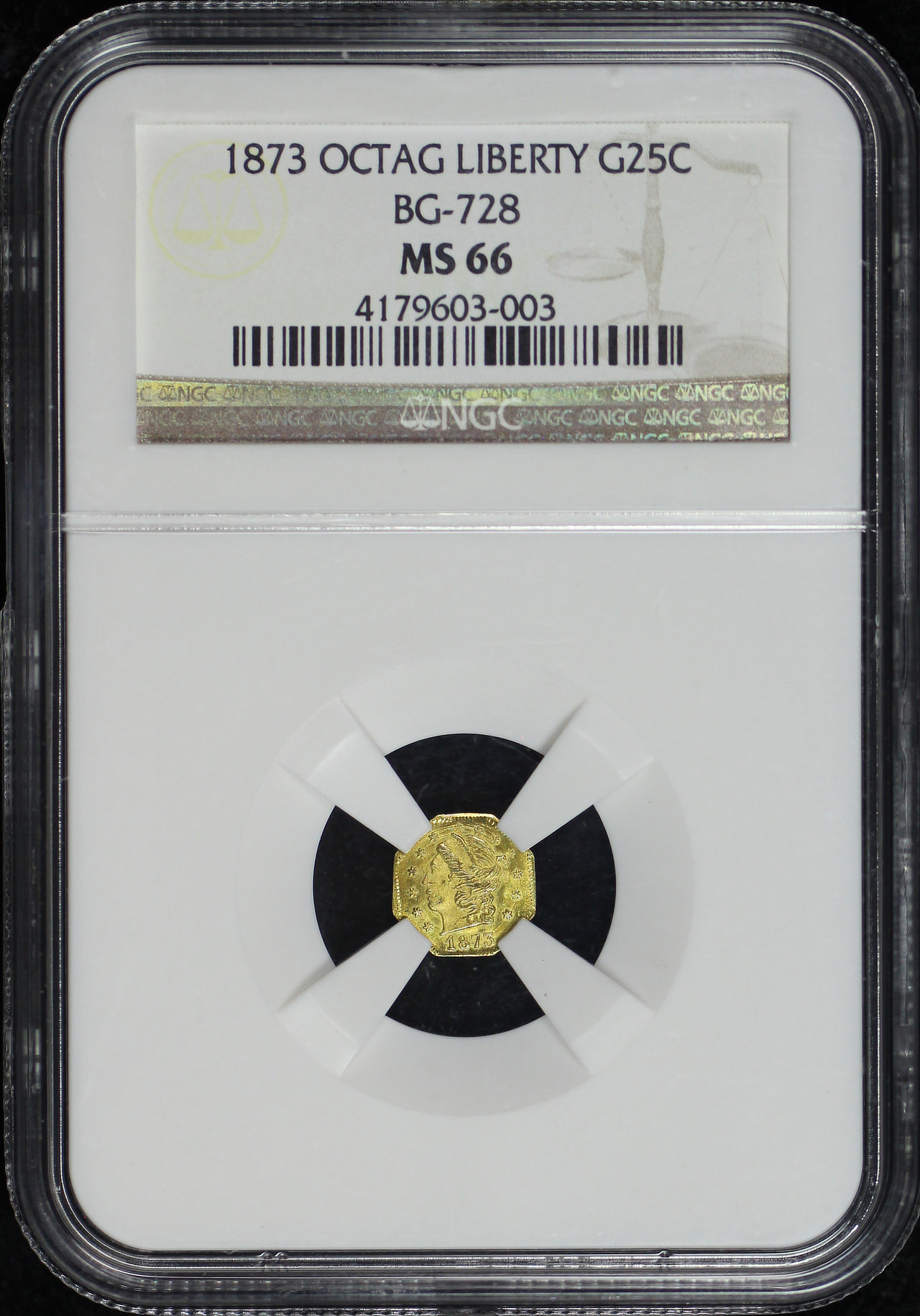 1873 G25C BG-728 Octagonal Liberty California Fractional Gold NGC MS-66.
