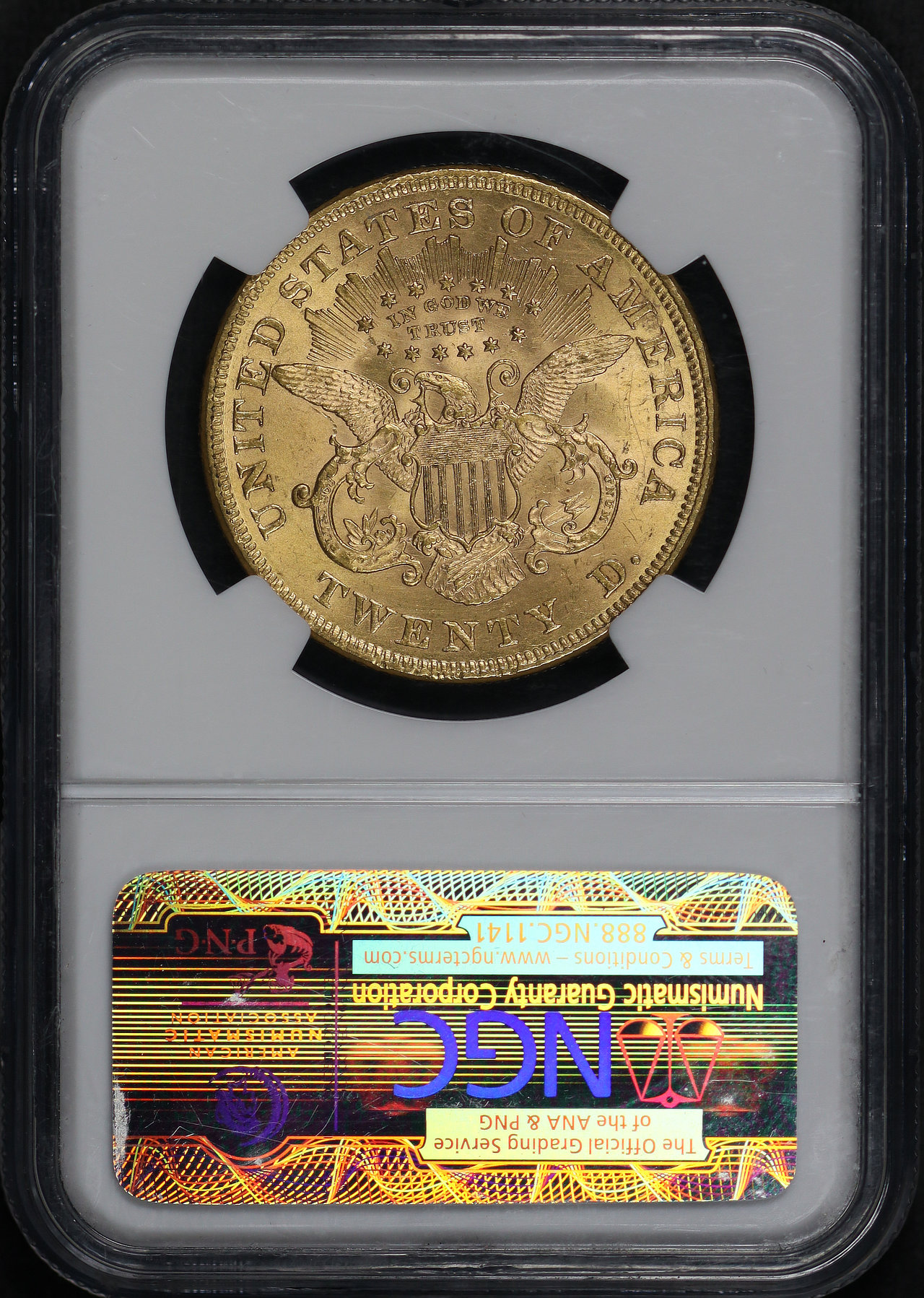 1873 Liberty Head $20 Open 3 NGC MS-61 CAC.