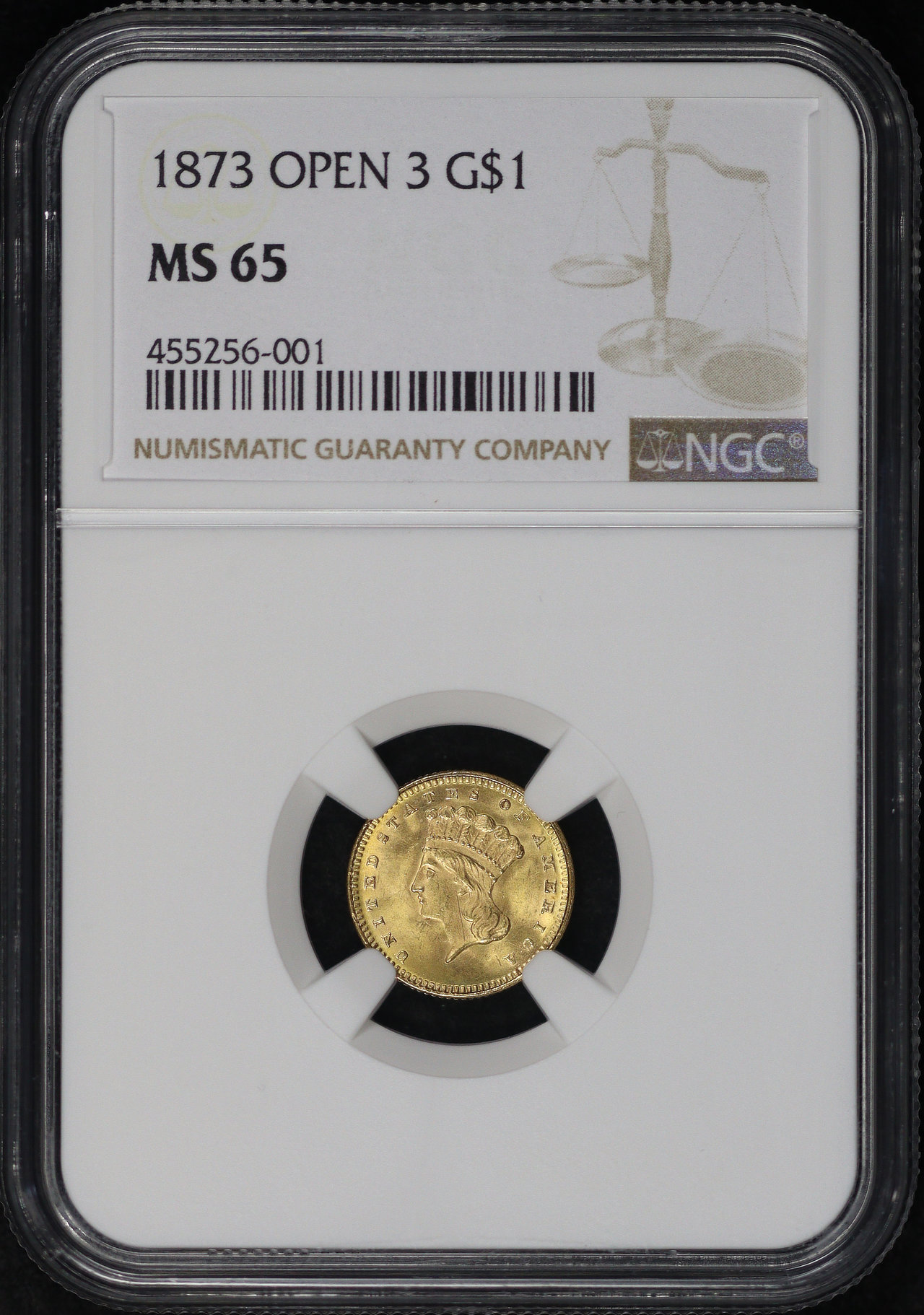 1873 Open 3 Type 3 Gold Dollar NGC MS-65.