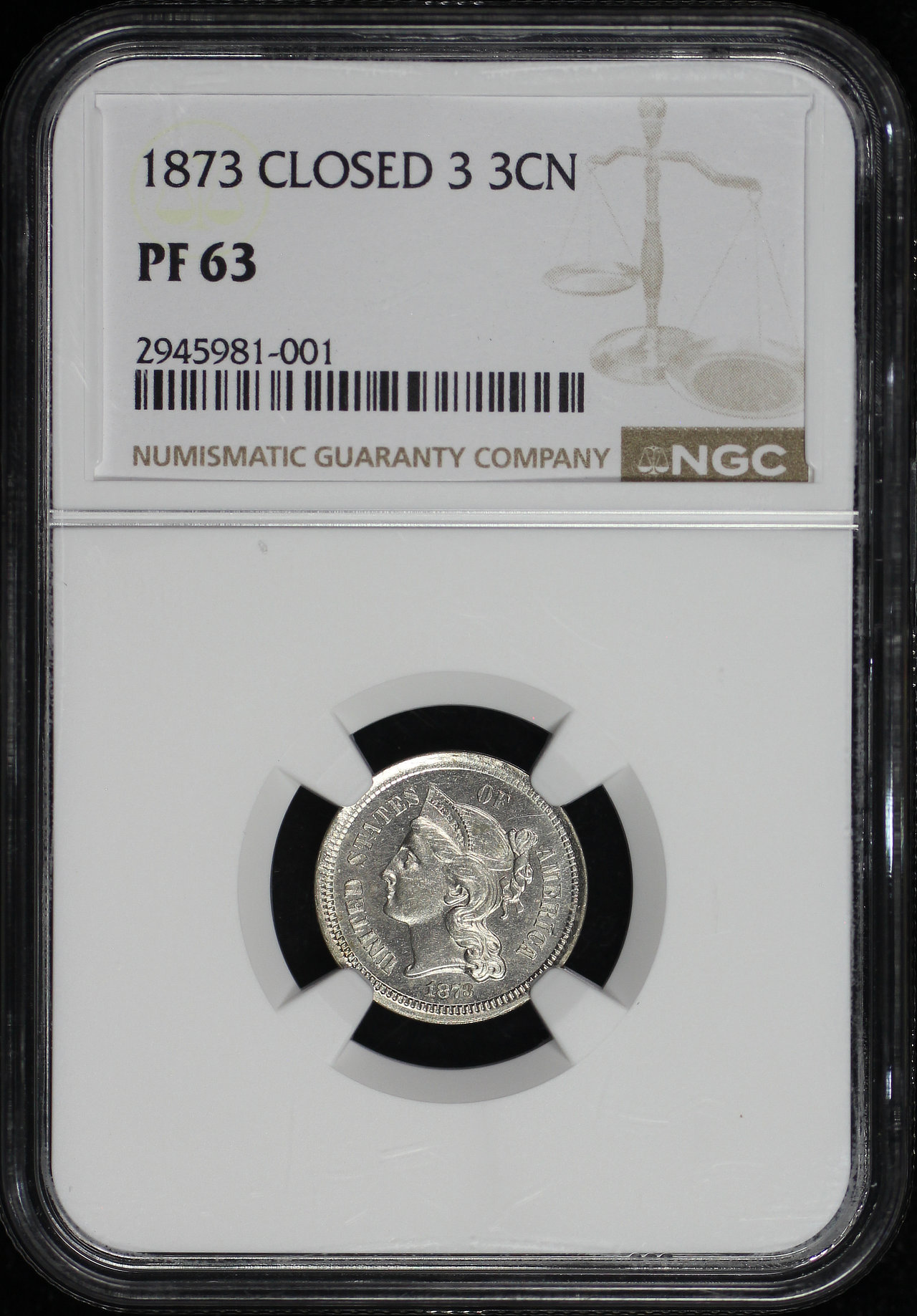 1873 Three Cent Nickel Closed 3 NGC PF-63.