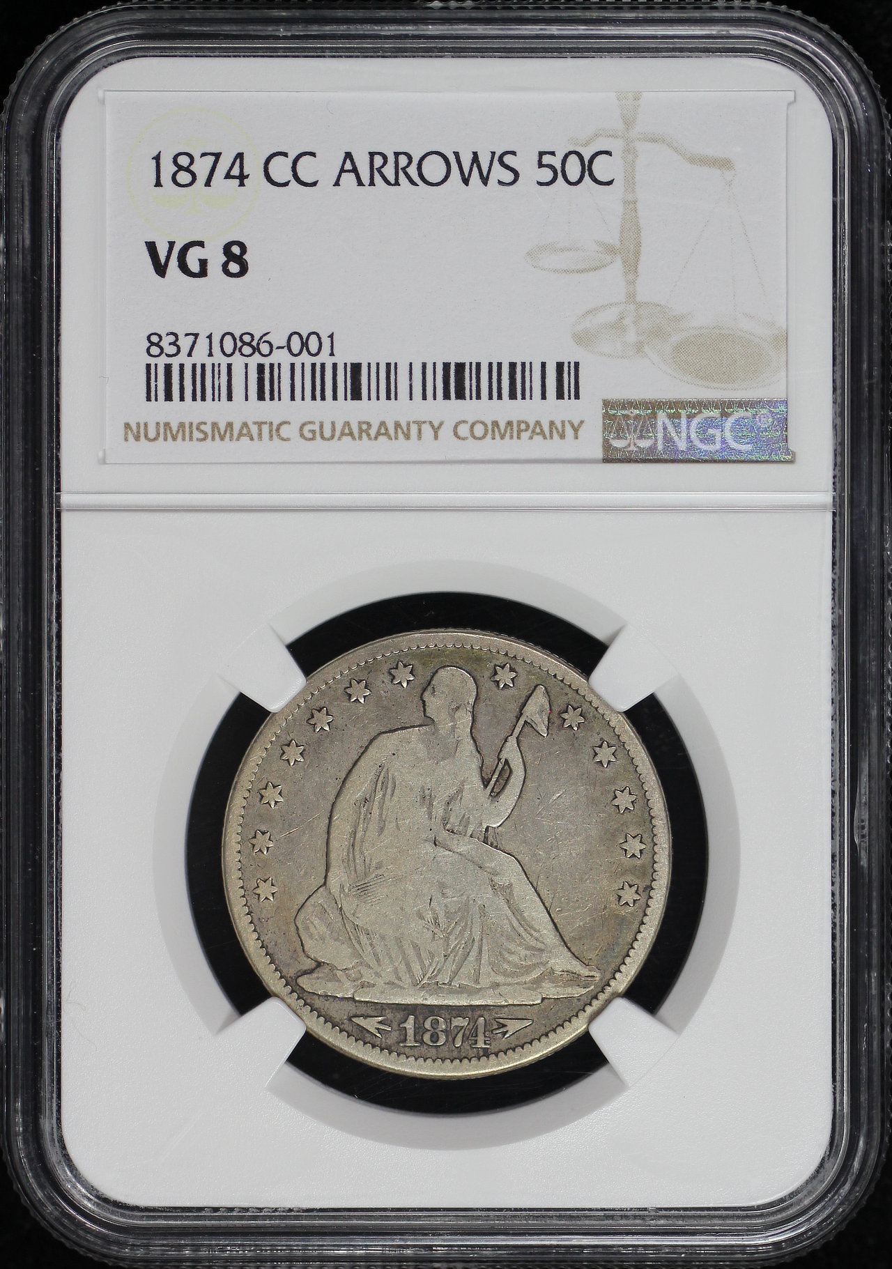 1874-CC Liberty Seated Half Dollar Arrows NGC VG-8.