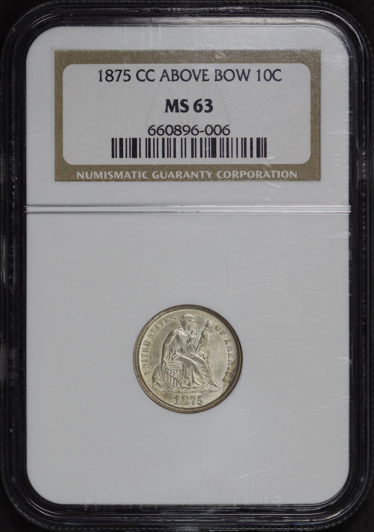 1875-CC Above Bow Liberty Seated Dime NGC MS-63.